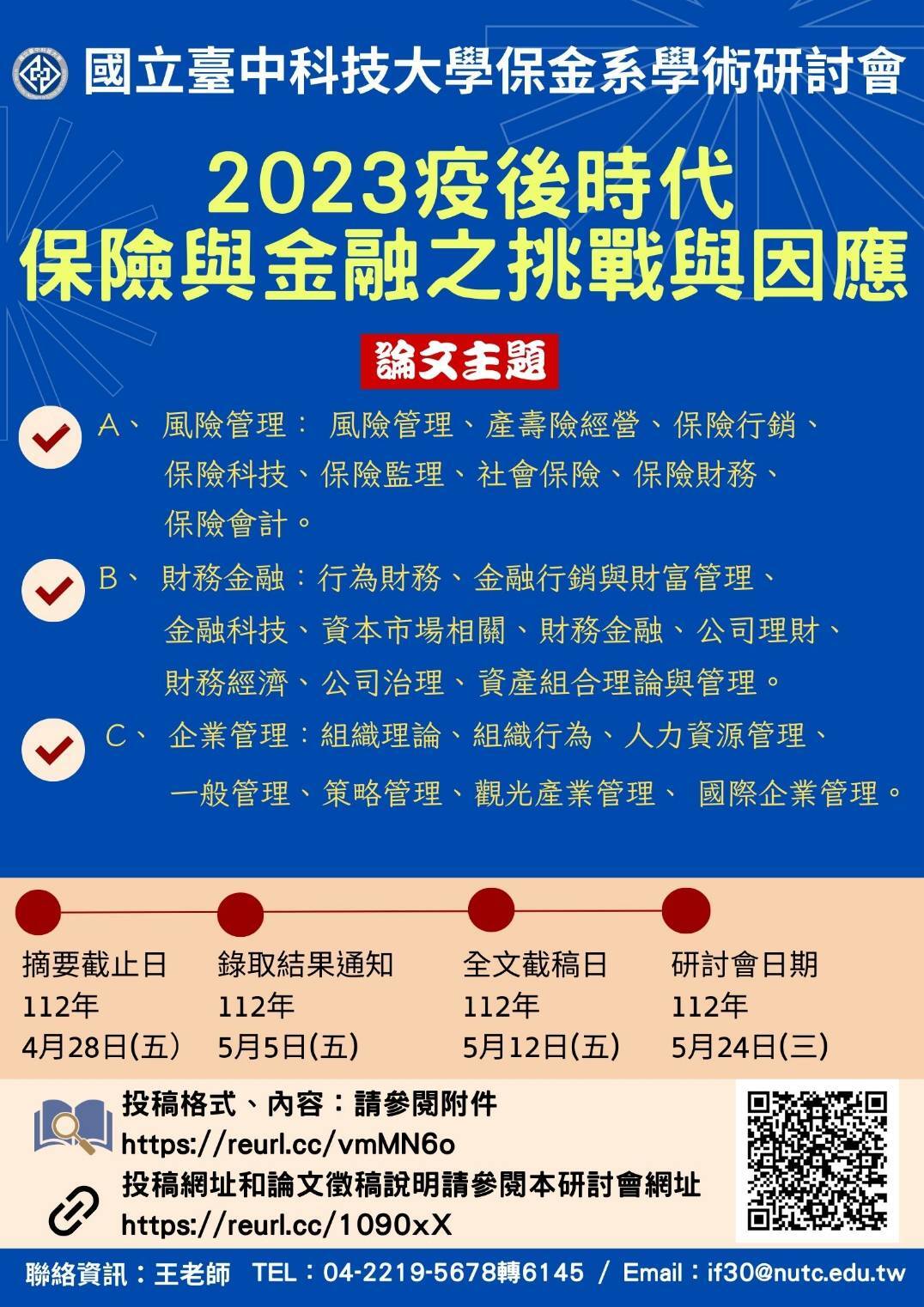 國立臺中科技大學 保險金融管理系舉辦「2023國立臺中科技大學保金系學術研討會」