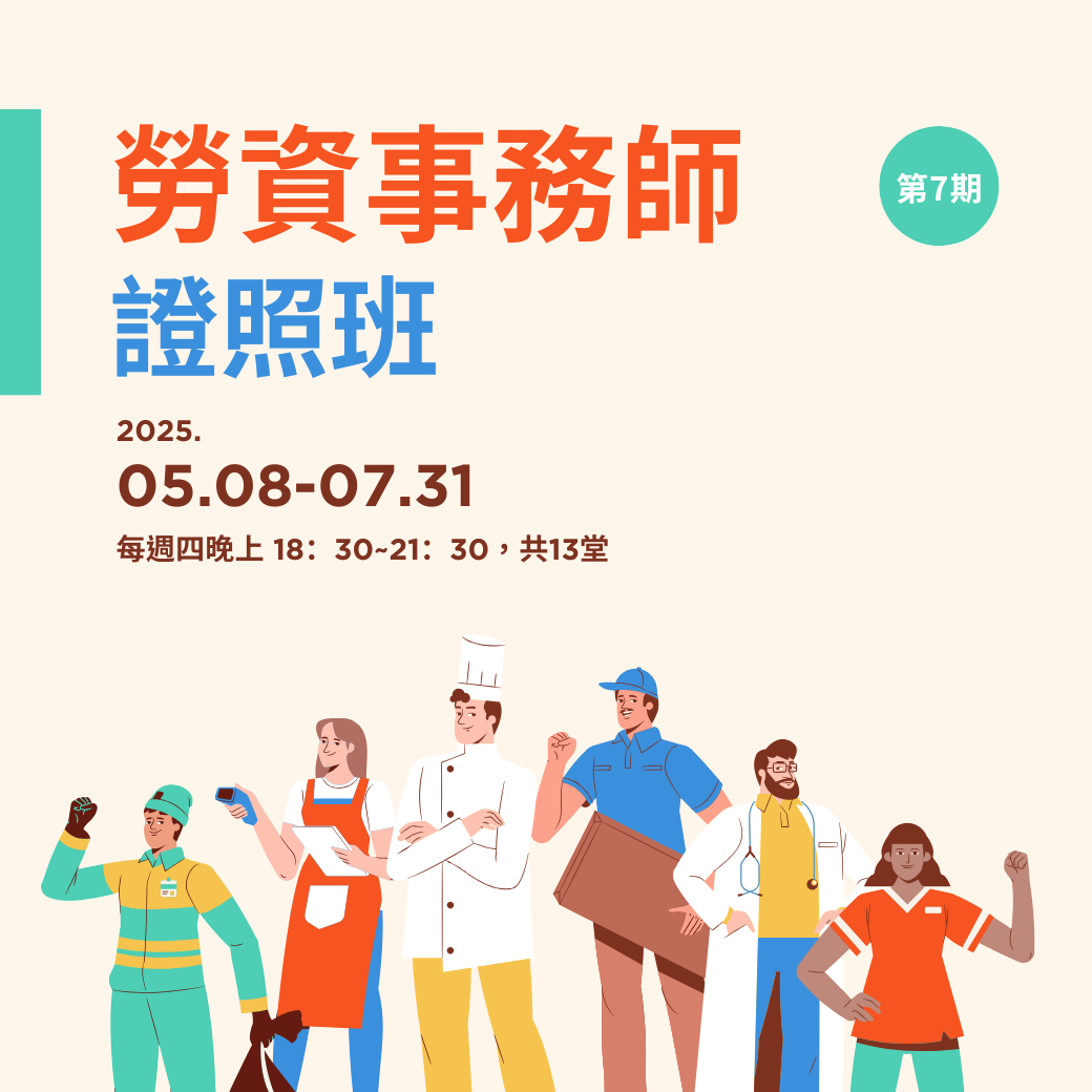 本課程最後一天將輔導考取「勞資事務師證照」,一次完成學習與考照!👍