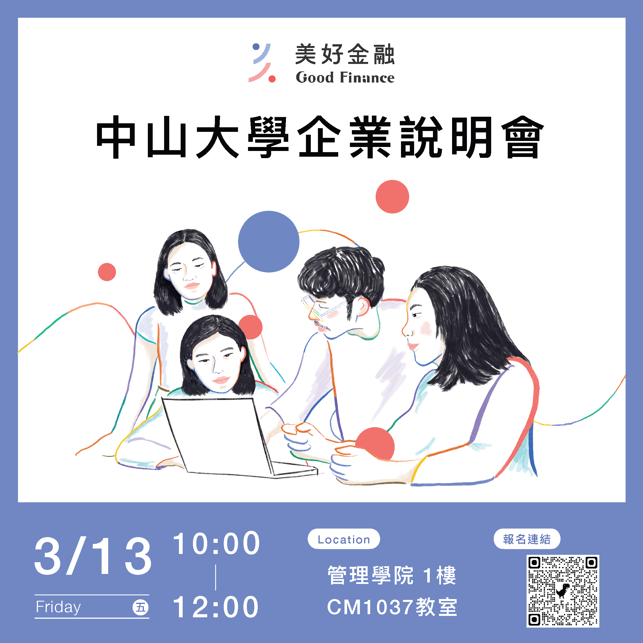 美好證券 Good Finance 即將來到中山大學,帶你深入了解證券產業最新趨勢與職涯發展藍圖,並公開分享 2026 年度最新徵才資訊!