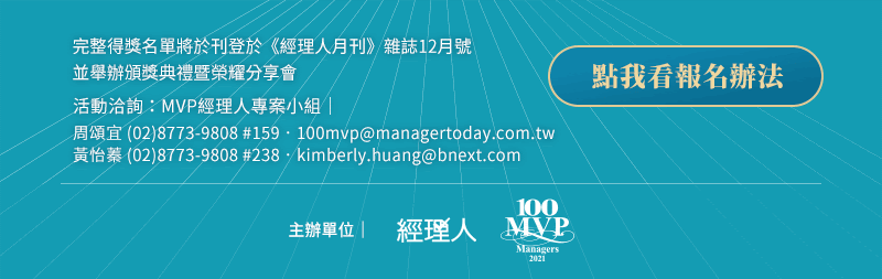 【轉知】2021年《經理人月刊》「100MVP經理人」徵選開跑(8/20止)
