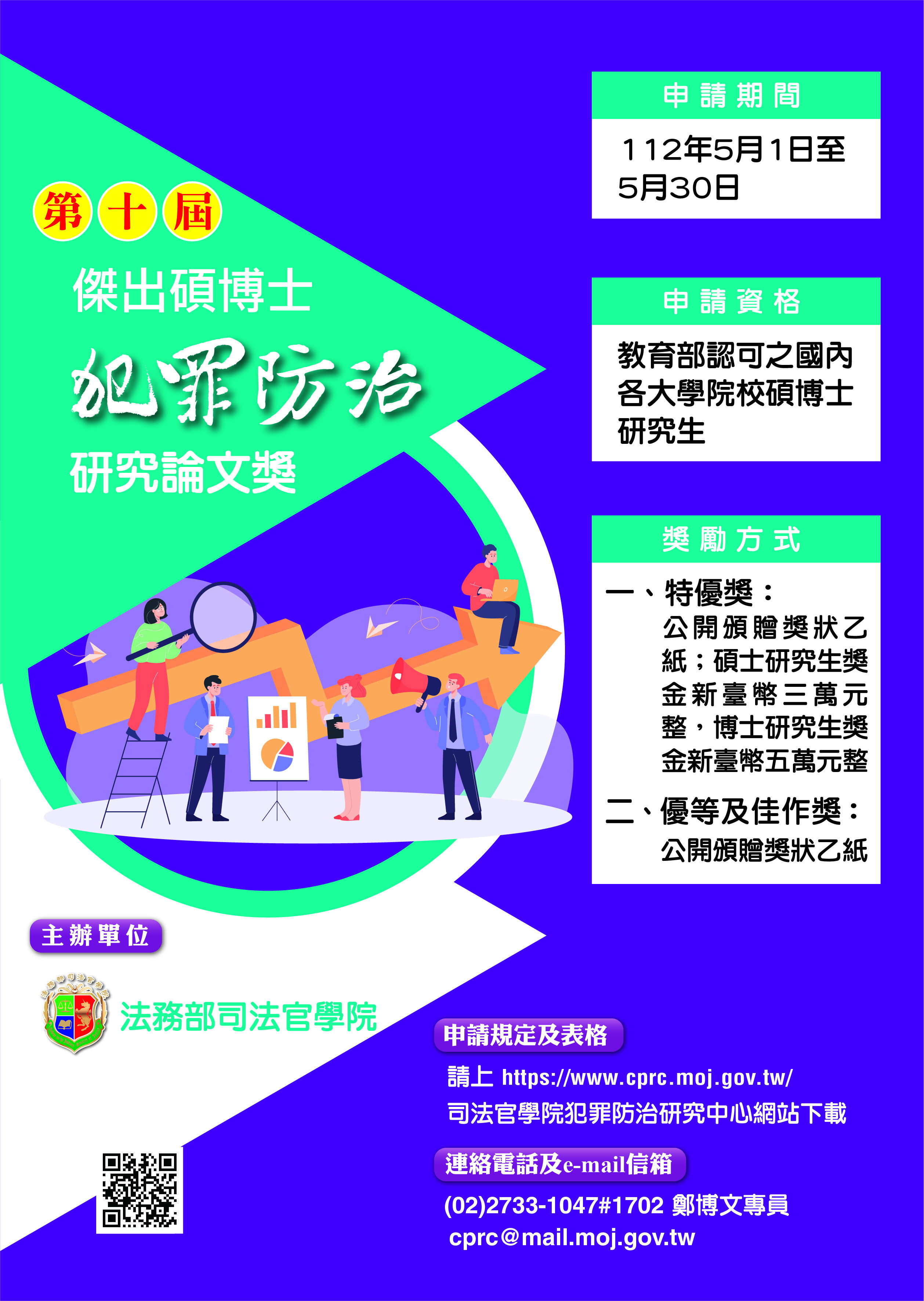 【法務部】「第10屆傑出碩博士犯罪防治研究論文獎」論文獎勵(5/30截止)