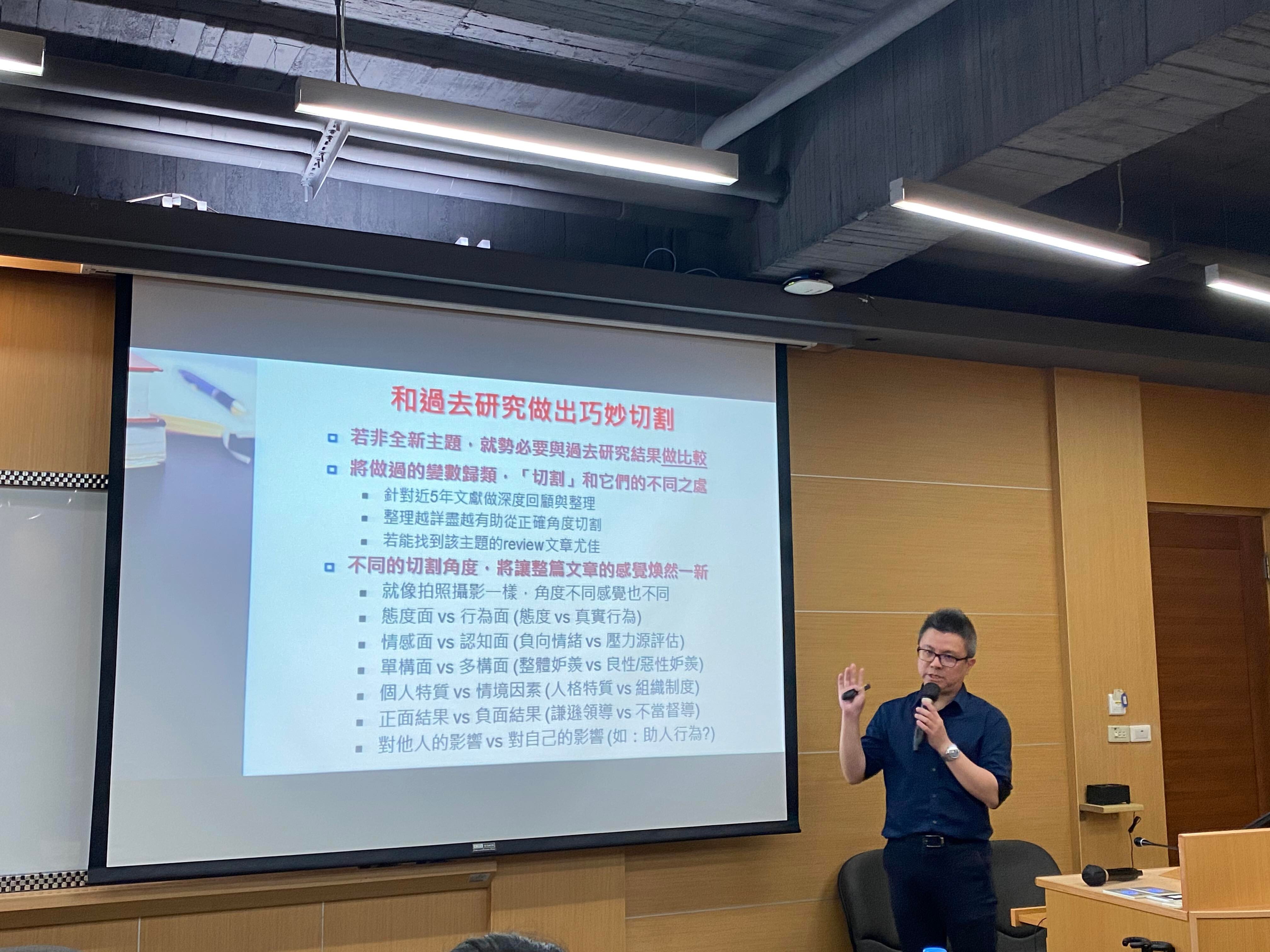 中山大學人力資源管理研究所所長紀乃文教授於3/23的演講,不藏私地以其在國內外頂尖期刊發表的經驗,分享「如何從成熟的研究領域中找出新缺口」。在本次演講中,紀老師提出三種可行的策略,並以「不當督導」的研究領域為主軸,輔以三篇得獎論文為例,教導如何將這些策略應用於自己的研究中。