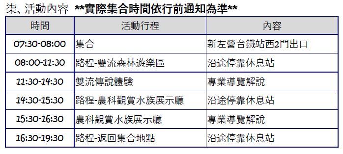 肆、活動時間113年 4 月 26 日( 五 )0730 時起 1930 時止。