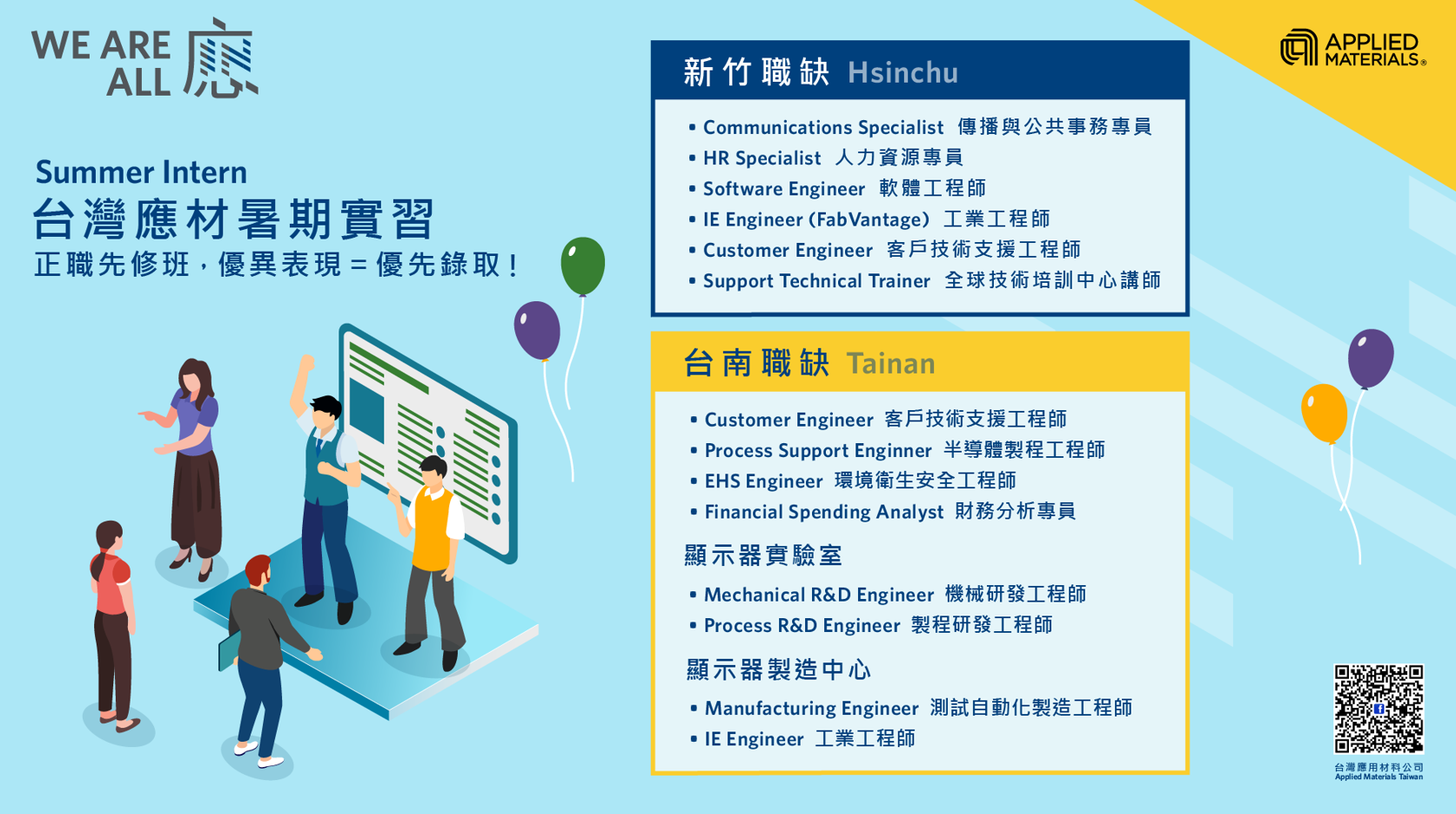 【實習】台灣應材 2024 年暑期實習專案起跑(4/15 截止)