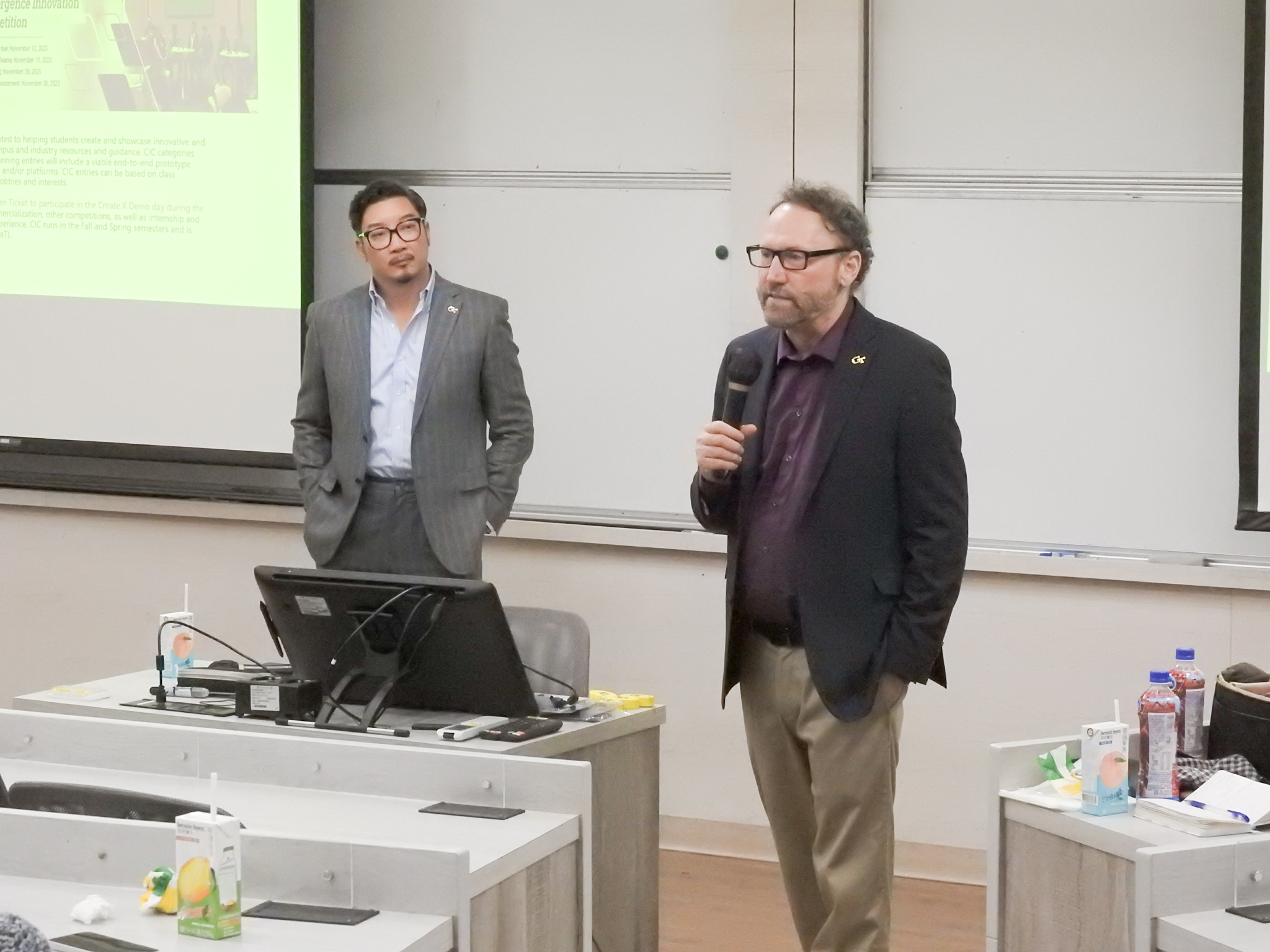 整合與創新競賽旨在激發學生的創造力和解決問題的能力,同時促進跨學科合作、和推動科技創業的競賽活動。學生須根據現實狀況提出解決方案,兩位主講人分享了有關競賽的見解,以激勵學生探索自己的創業潛力,也期許學生能試著解決當前迫切社會問題,為此盡一份心力。