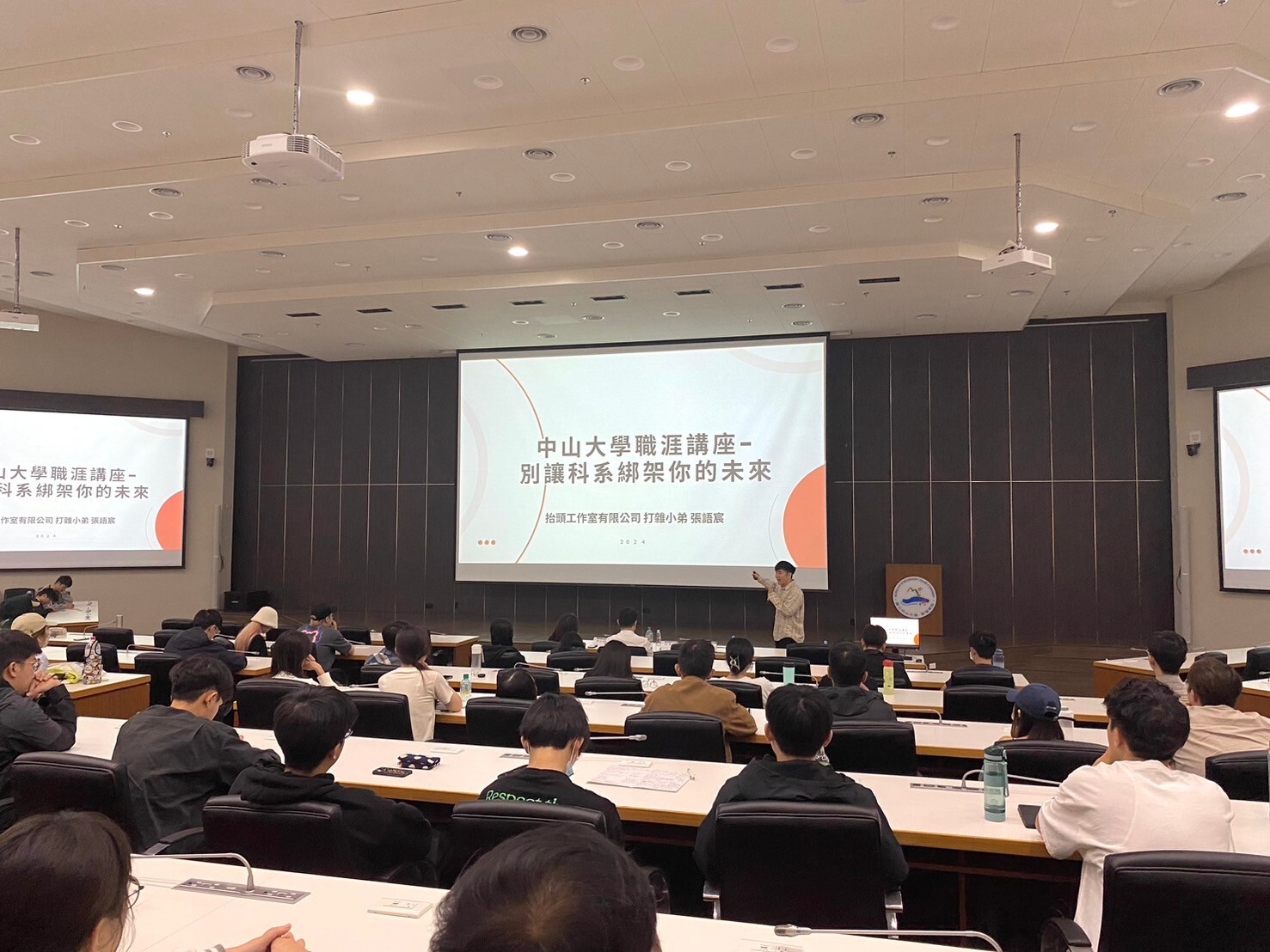 別讓科系綁架你的未來,不斷學習的人生將充滿無限可能性!中山大學管理學院職涯發展辦公室於3月20日舉辦「大學之道職涯講座-別讓科系綁架你的未來」,邀請畢業於中山人管所的林瑋志顧問(現職帝亞吉歐人資總監)和張語宸學長(現職抬頭工作室負責人)來向同學分享自我成長故事,吸引超過100位中山學生前來聆聽。