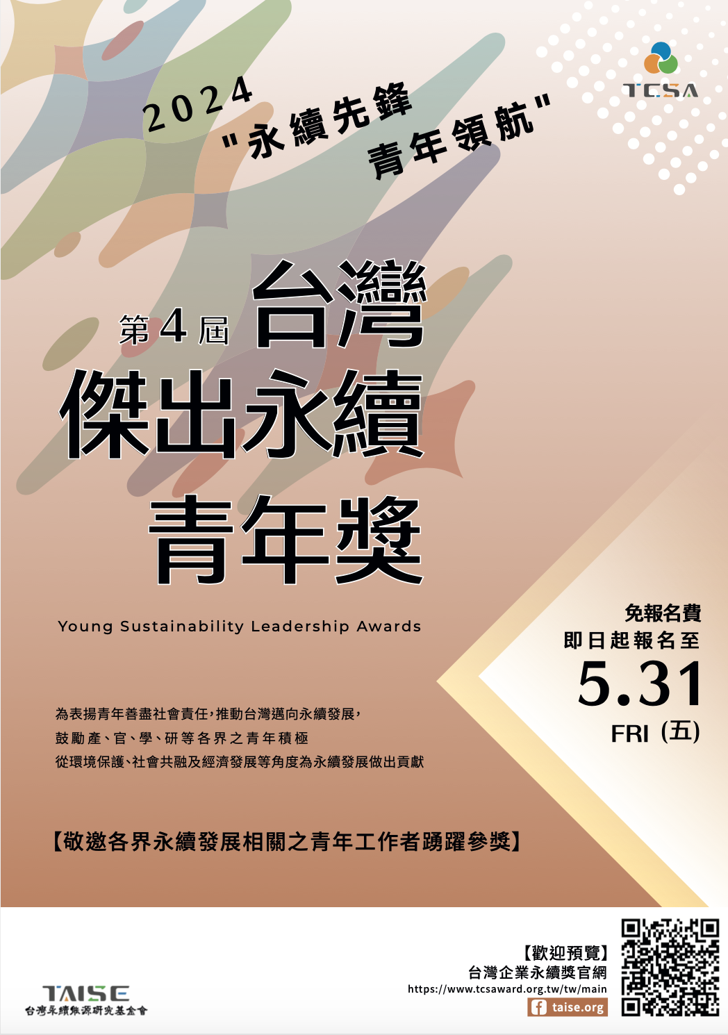 【台灣永續能源研究基金會】辦理「2024 台灣傑出永續青年獎」徵選活動(5/31截止)