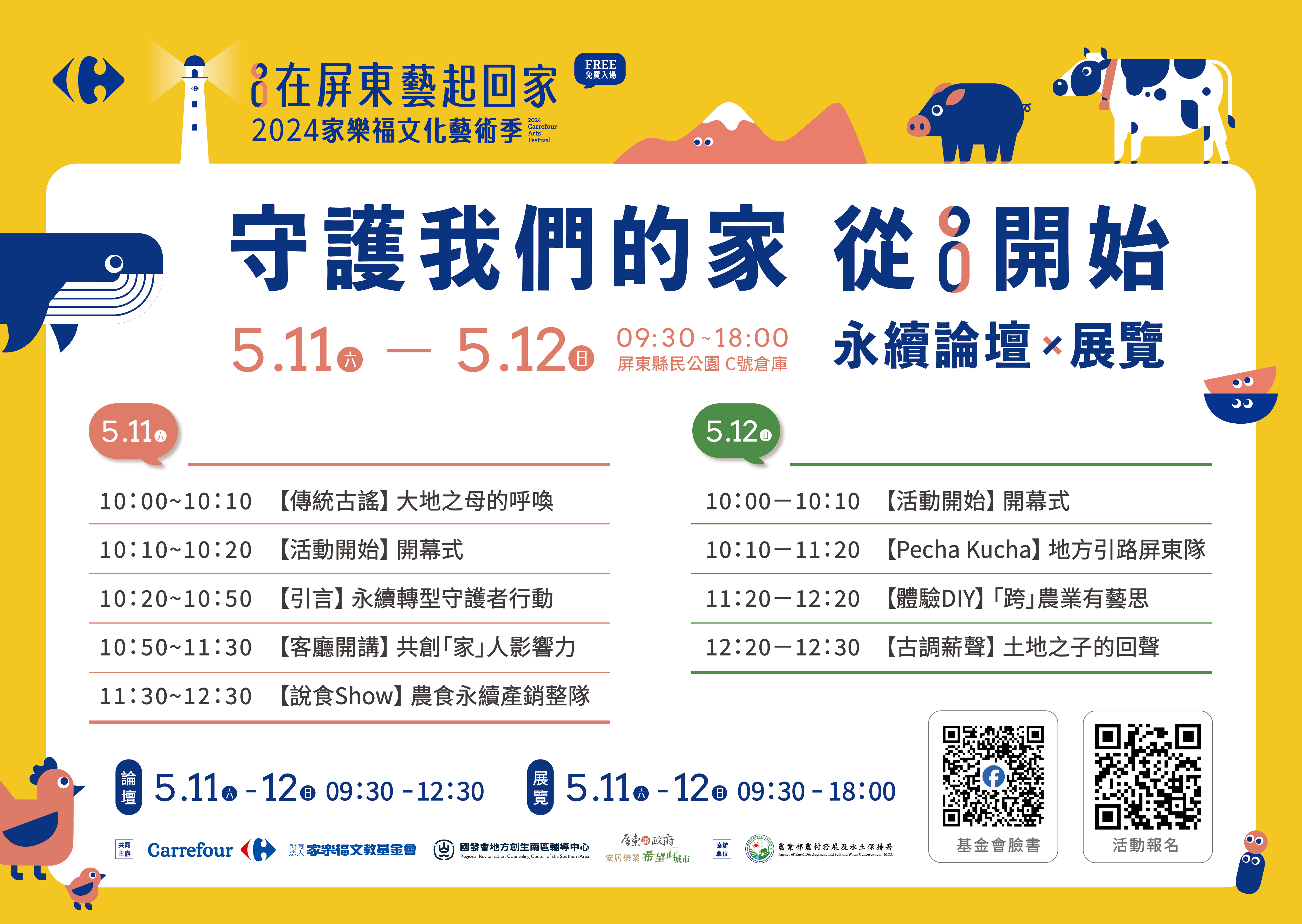 三、「永續論壇暨展覽-守護我們的家從i開始」謹訂於113年 5月11至12日上午9時30分至下午6時,假屏東縣縣民公園C棟倉庫辦理,採事先線上報名