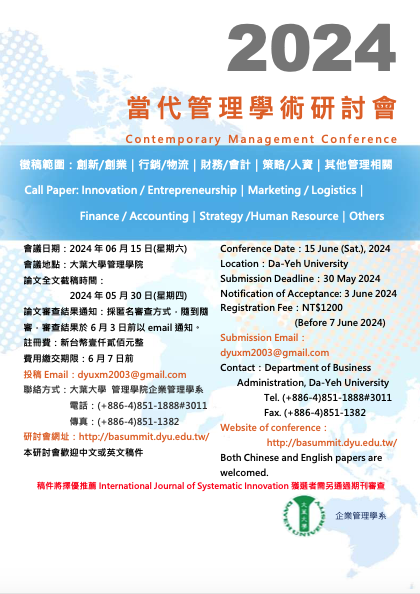 【大葉大學】企業管理學系舉辦「2024當代管理學術研討會」(6/15)