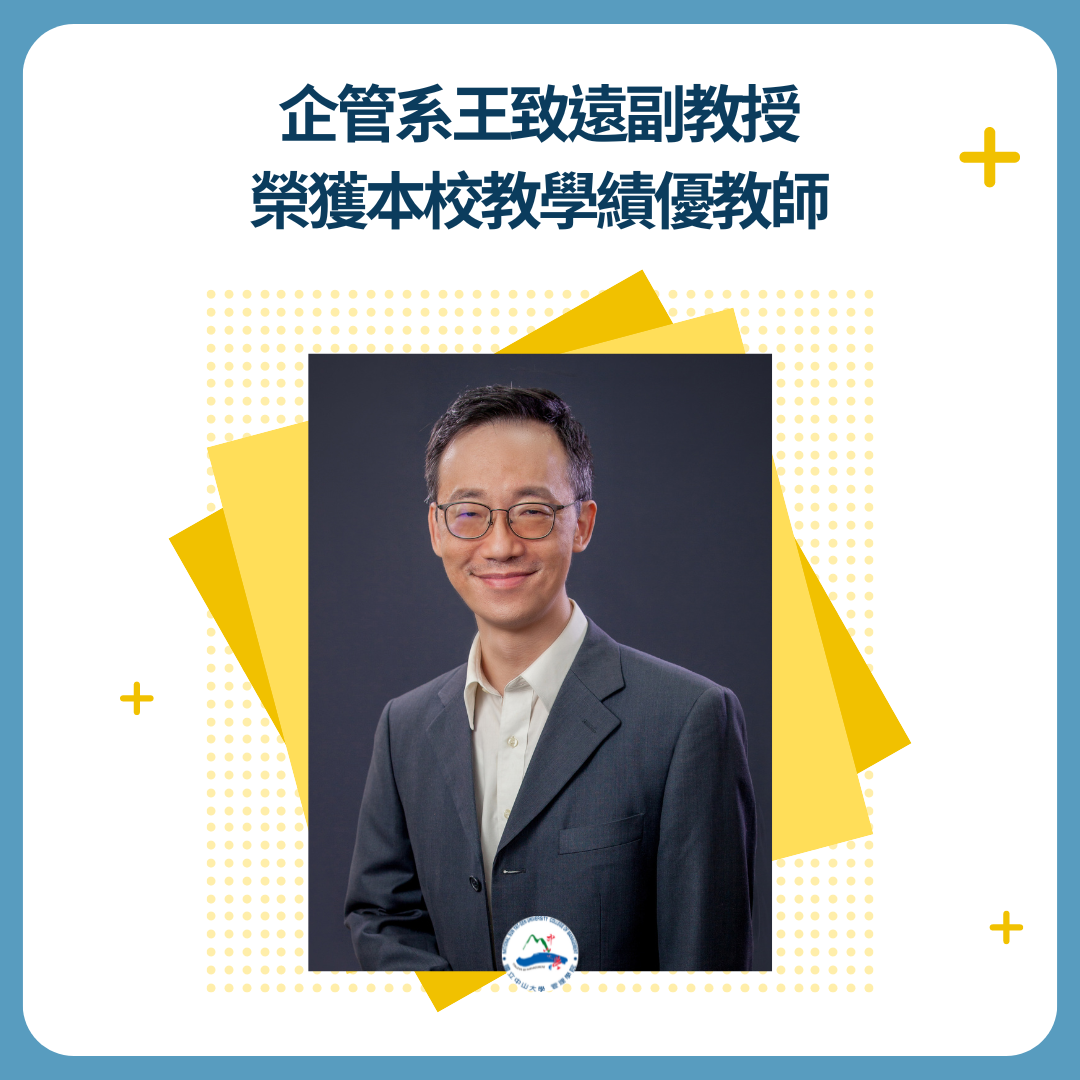 恭喜企管系王致遠副教授🎉、人管所王豫萱助理教授🎉榮獲本校教學績優教師