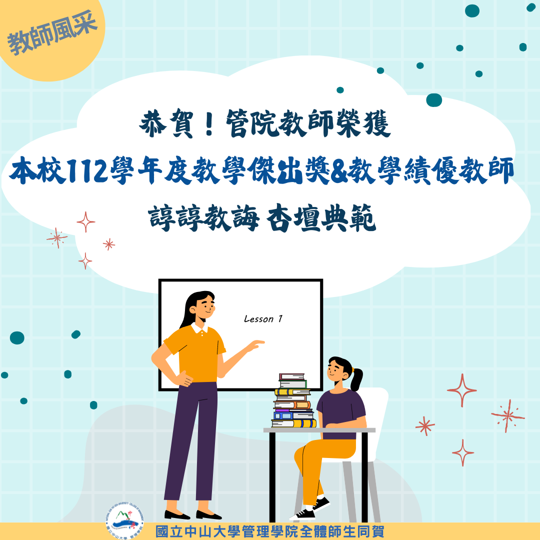 【教師風采】恭賀!管院教師榮獲本校112學年度教學傑出獎&教學績優教師 諄諄教誨 杏壇典範