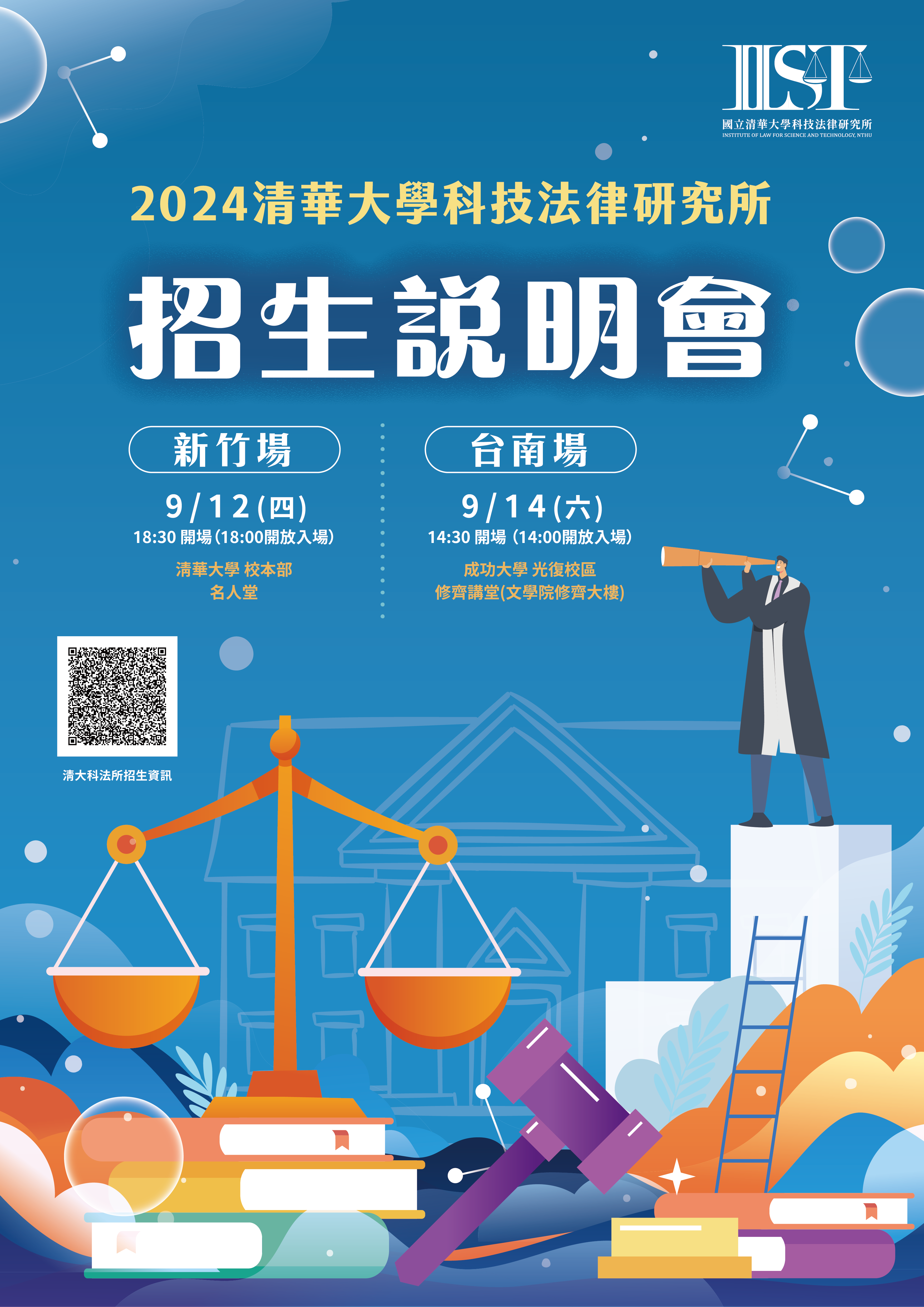 114清華大學科技法律研究所招生說明會總籌團隊將於新竹和台南各舉辦一場關於清大科技法律研究所的招生說明