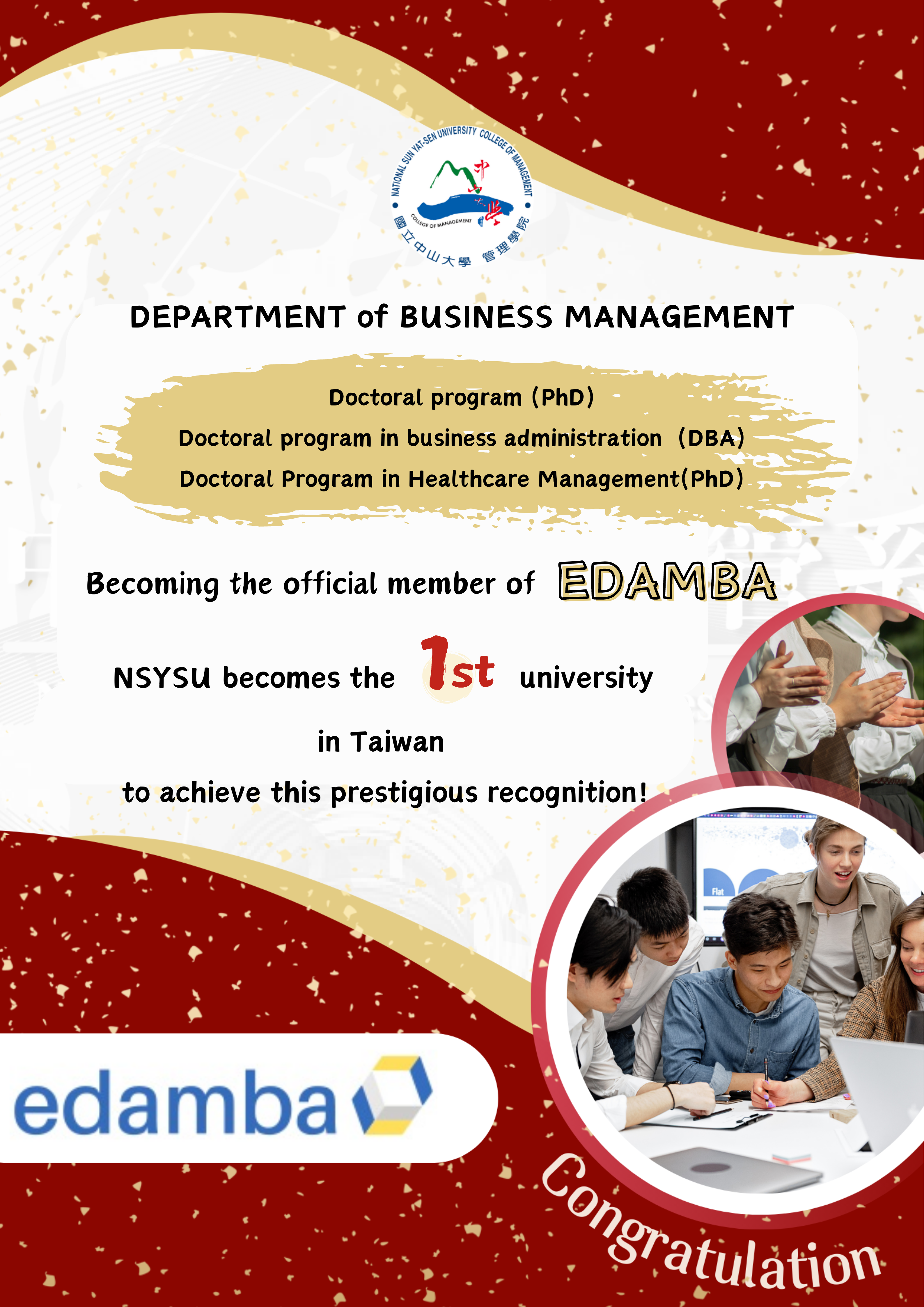 [CM Honor] Breaking News! NSYSU's Three PhD Programs in Business Management becoming the first EDAMBA members in Taiwan