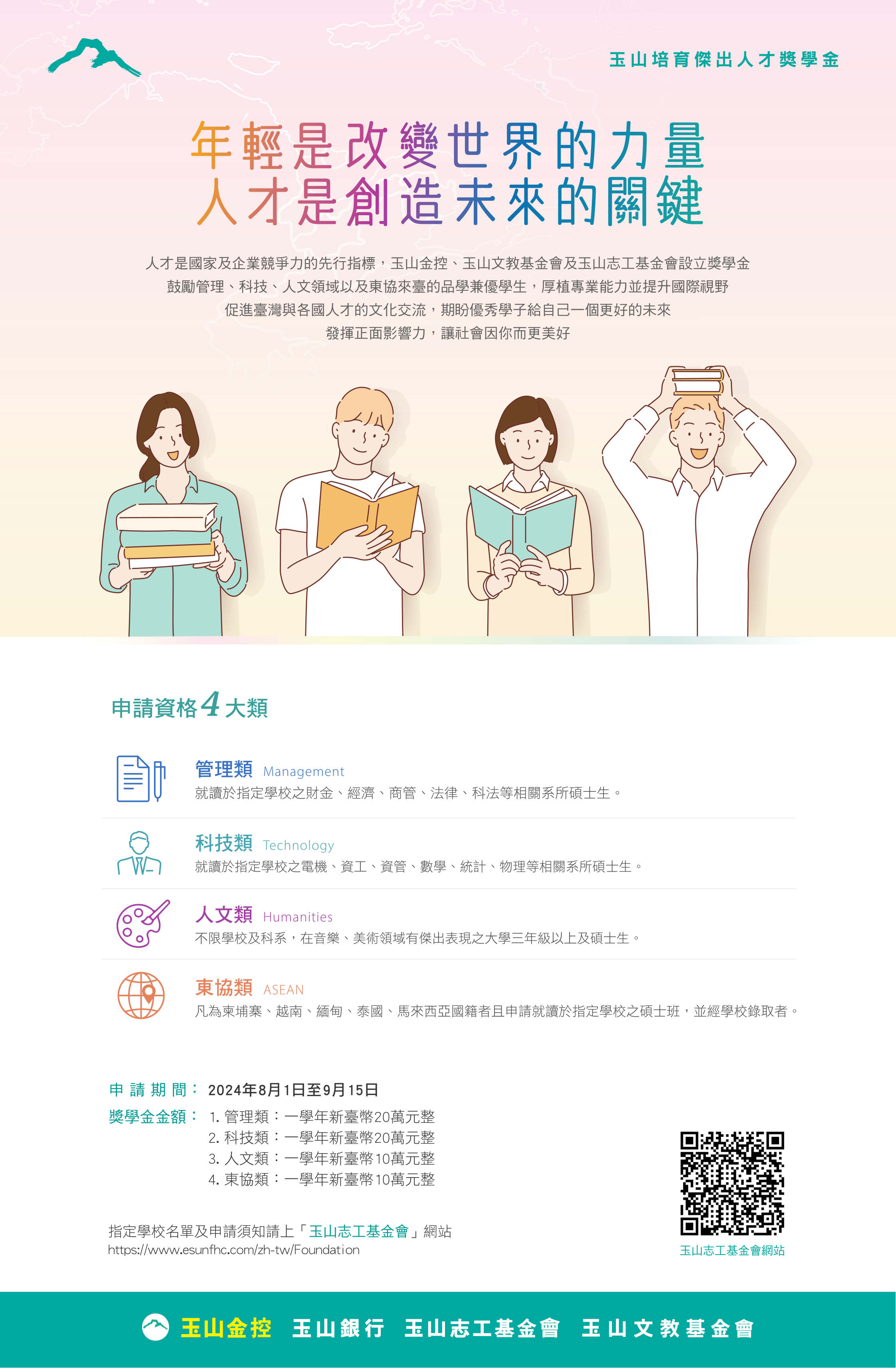 【玉山志工基金會】2024 玉山培育傑出人才獎學金