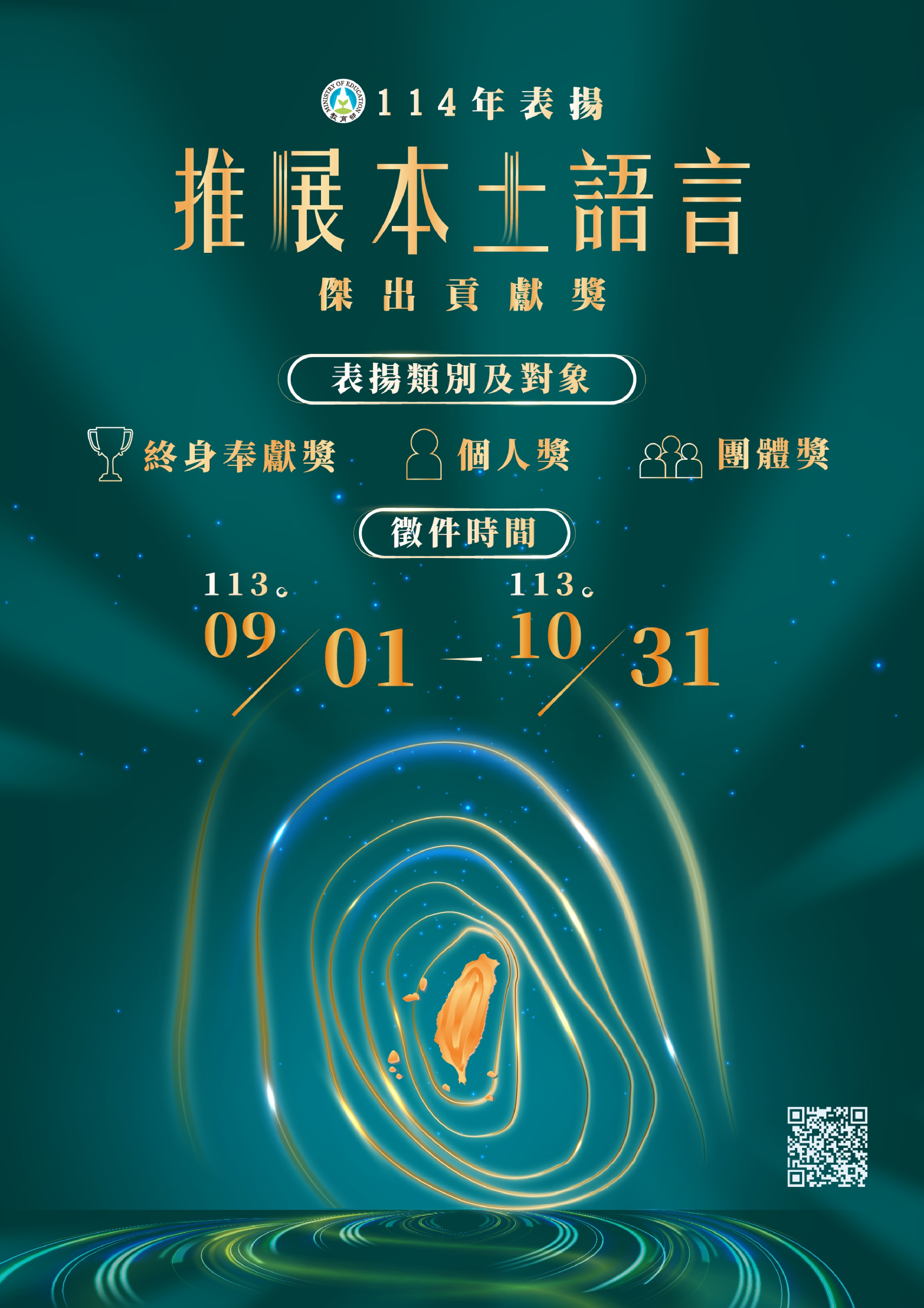 【教育部】114年表揚推展本土語言傑出貢獻獎(10/31截止)