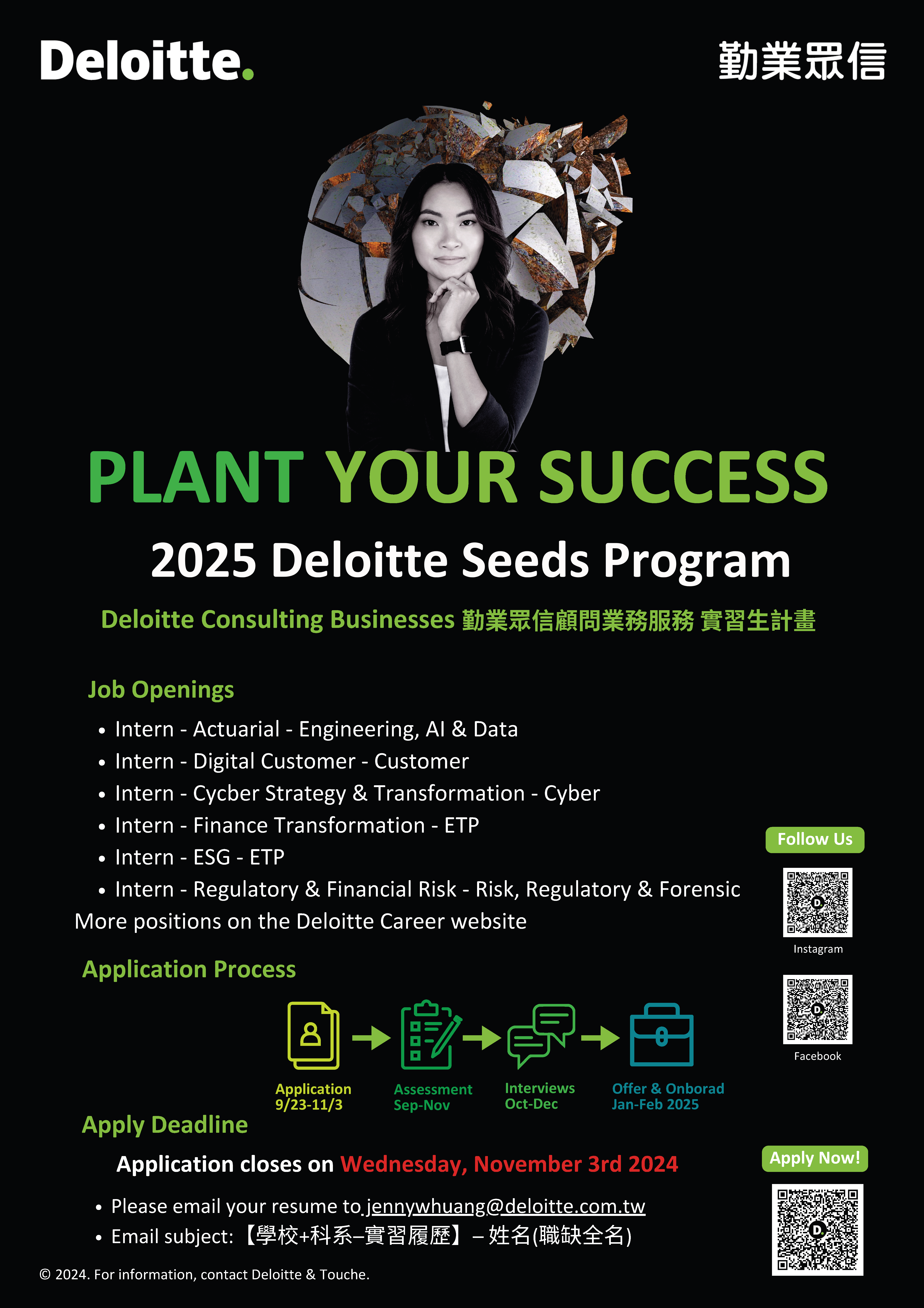 【實習】勤業眾信|2025實習生計劃起跑!(11/3截止)