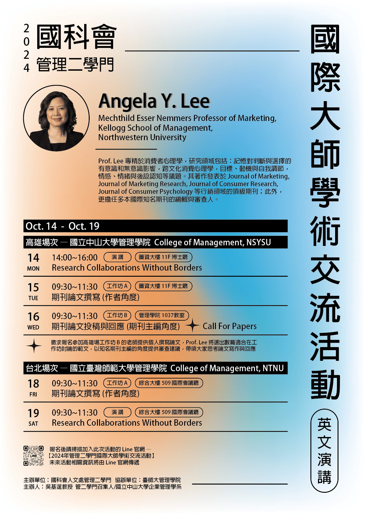 【國科會】管理二學門國際大師學術交流活動(英文演講)(10/14-10/19)