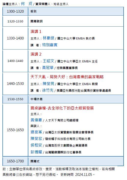 【APEMBA】2024亞太論壇:地緣政治下亞太經貿趨勢與策略佈局(11/24)
