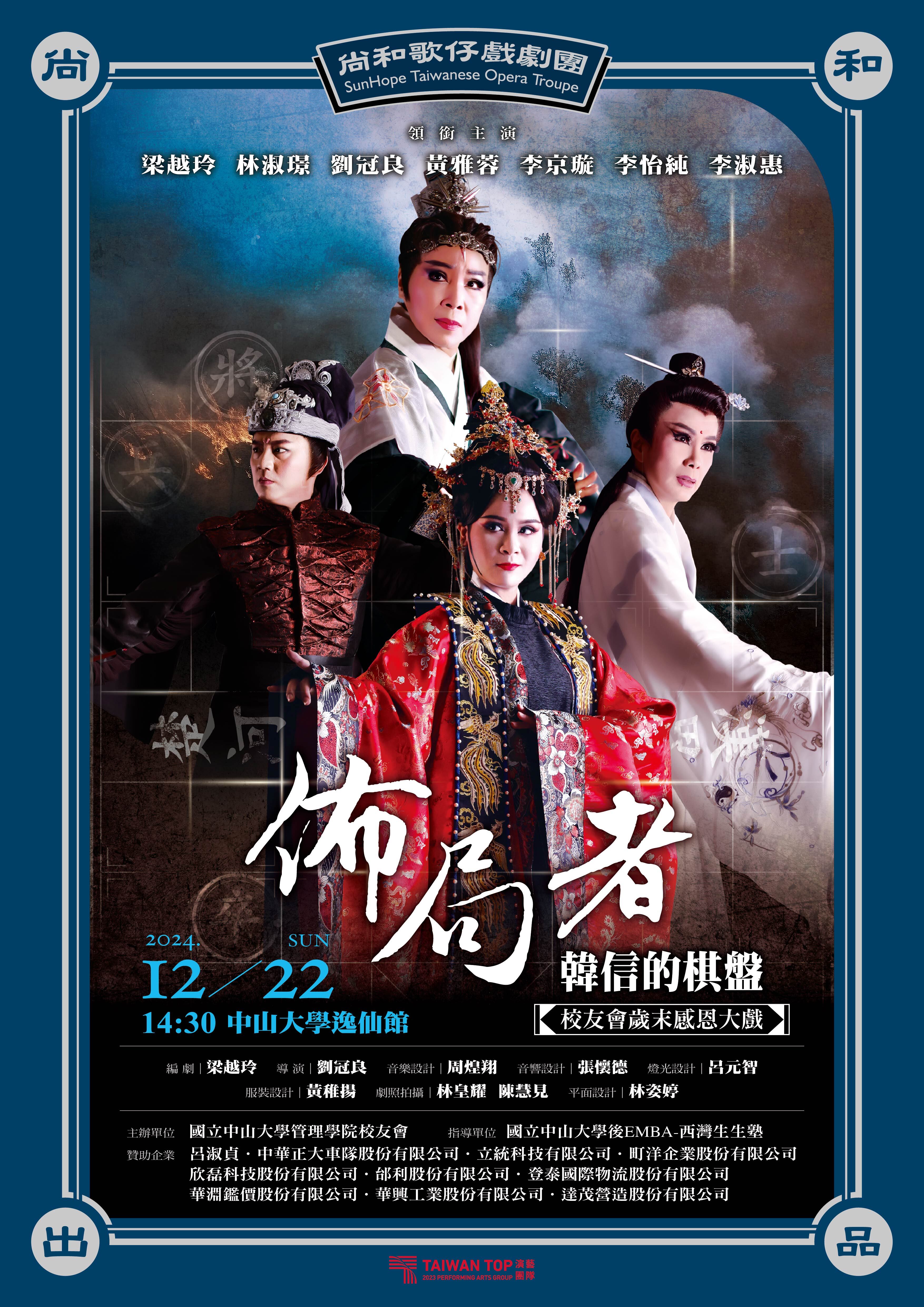 《佈局者·韓信的棋盤》尚和歌仔戲劇團帶來的這場戲曲盛宴,不僅展現傳統戲曲藝術,也傳遞職場中的智慧與策略,讓您在娛樂的同時,感受到古今職場的深刻對話。
