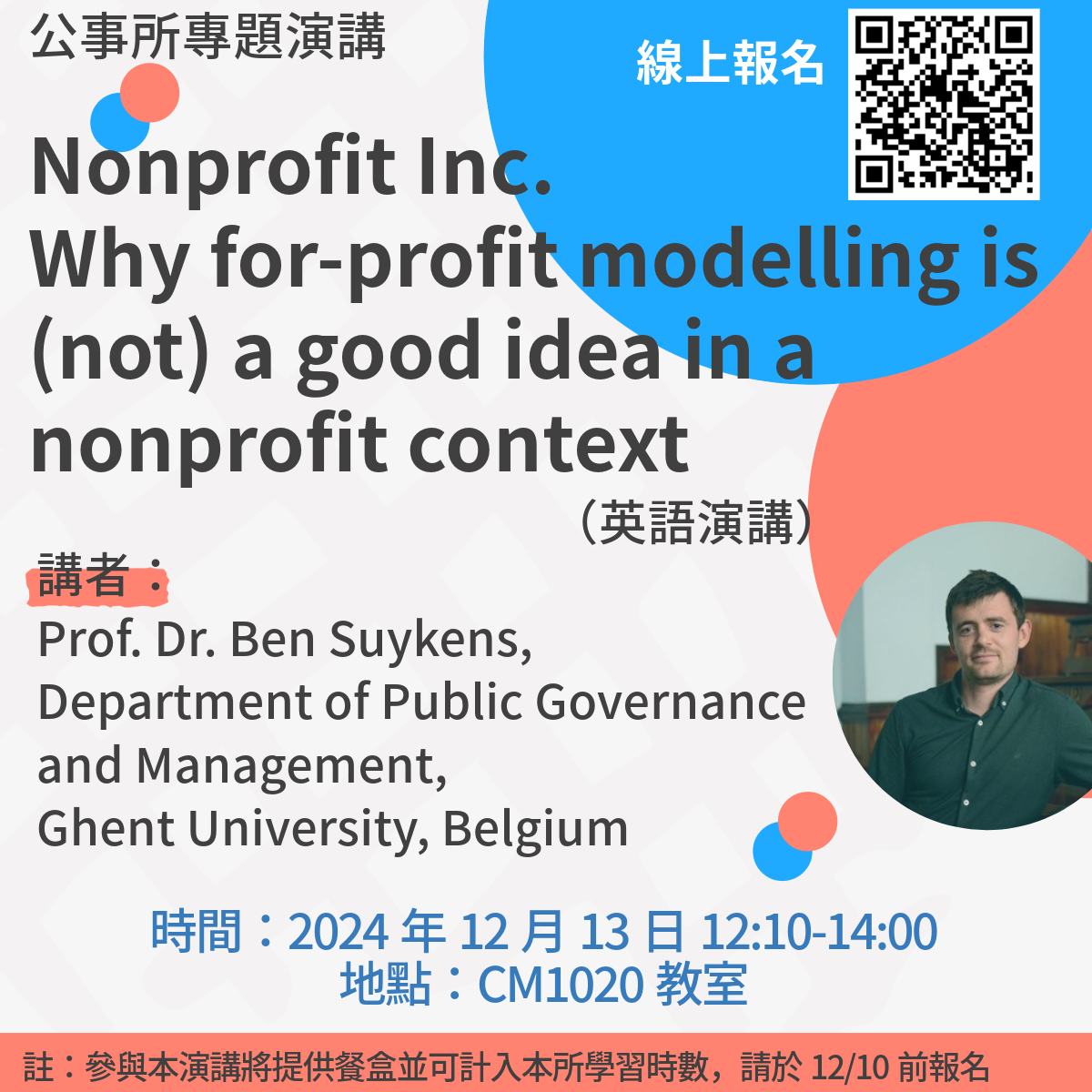 【公事所】國外講座學者Ben Suykens:Nonprofit Inc. Why for-profit modelling is (not) a good idea in a nonprofit context(12/13)