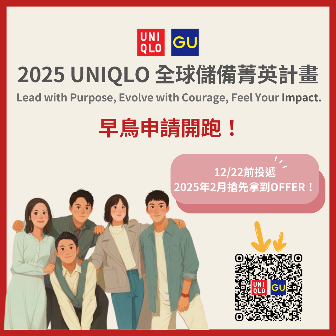 【徵才】手刀申請!UNIQLO 2025 全球儲備菁英計畫開跑!(12/22前)