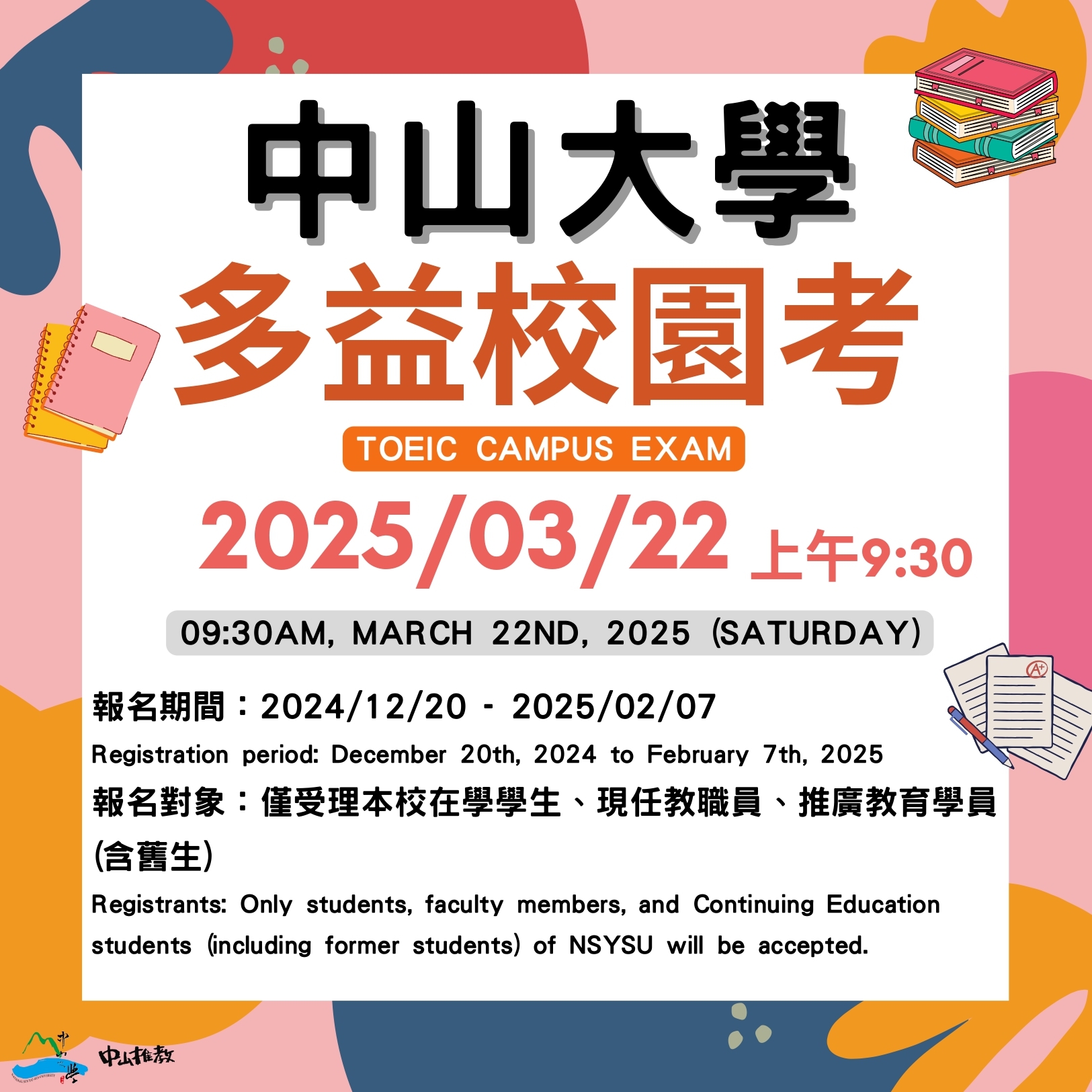 【中山】114年3月22日「多益校園考」(2/7截止)