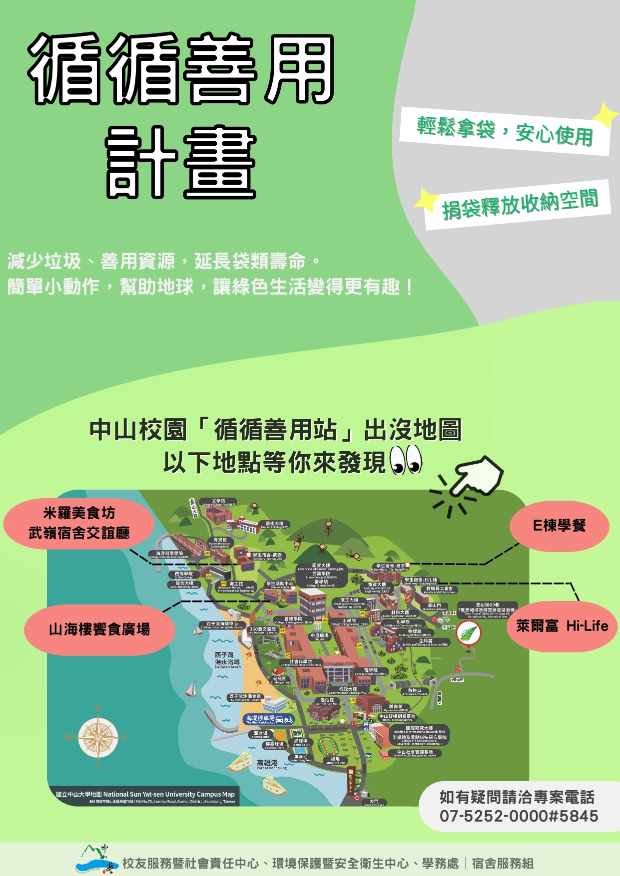 四、檢附活動說明及站點地圖,如有任何問題,請洽專案電話 07-5252000#5845,有專人為您解答。