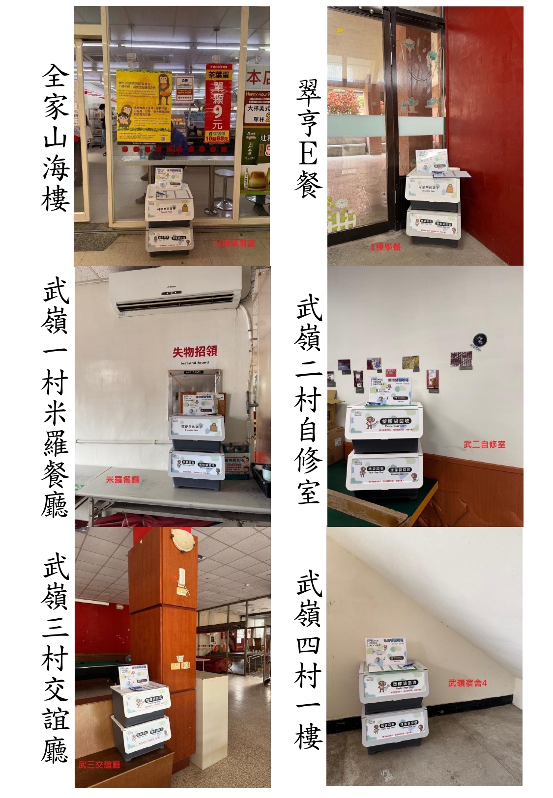 三、有意願提供者可將袋子放置於指定地點回收箱內,如有需求亦可從回收箱取用,藉由簡單的小動作減少垃圾產生 ,促進資源循環並減少碳排放量,回收箱地點如下: