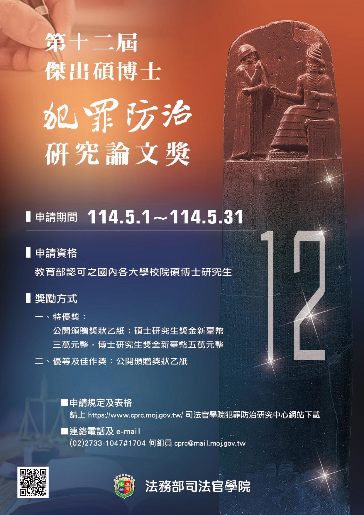 二、旨揭論文獎助活動自114年5月1日期至114年5月31日止受理申請,相關申請對象、獎勵名額及獎勵要點詳如附件及說明。