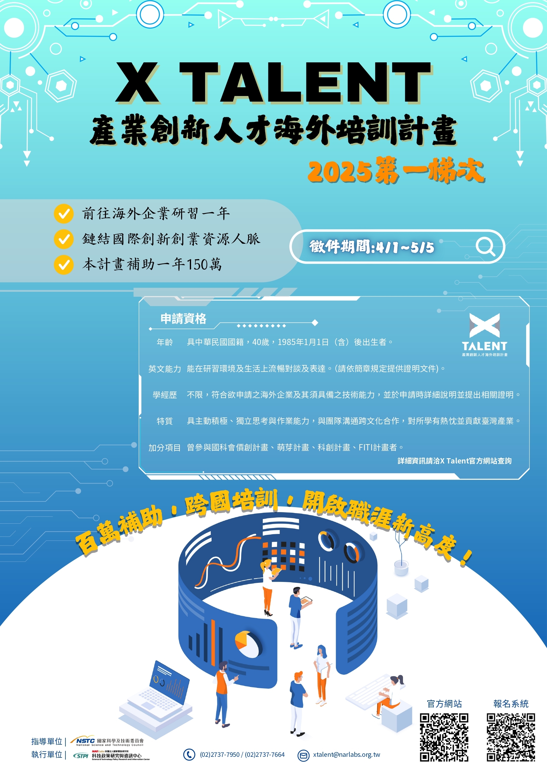 【國家實驗研究院】國科會「產業創新人才海外培訓計畫(X Talent Program)(5/5截止)」