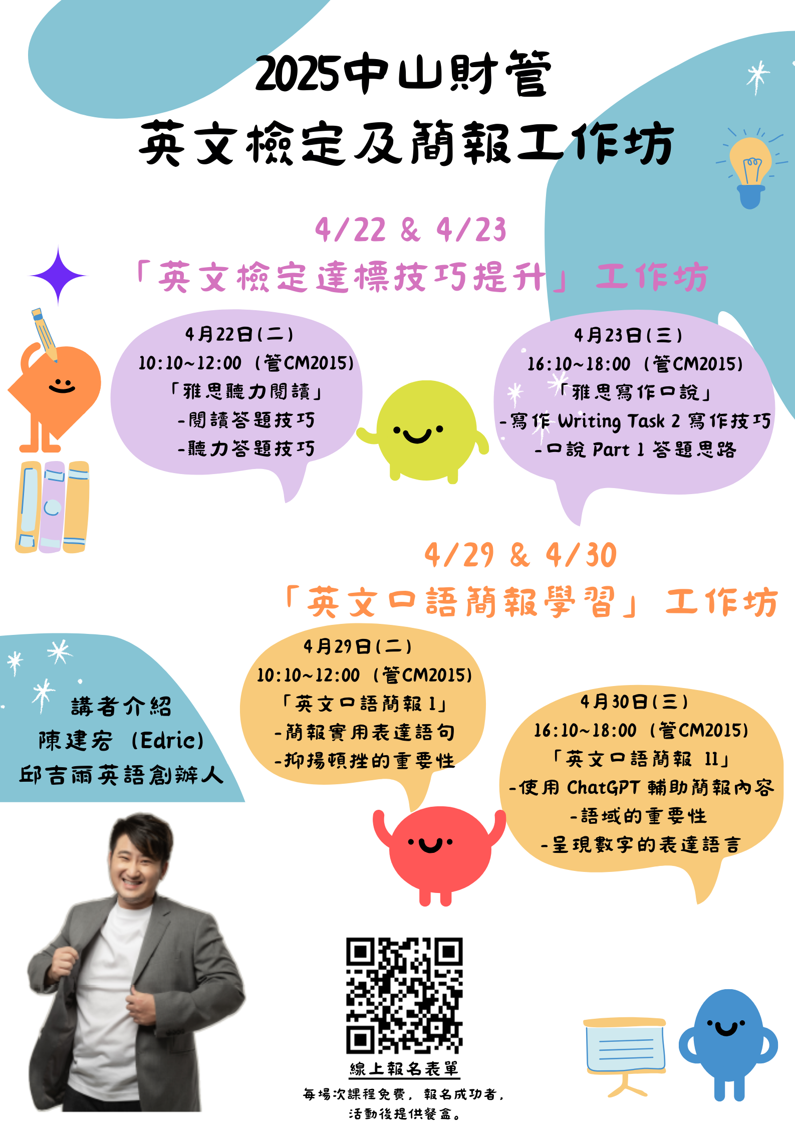 【管院工作坊】財管系主辦|乾貨滿滿🔥 4月超實用英語工作坊 等你來報名!(4/22、4/23、4/29、4/30)