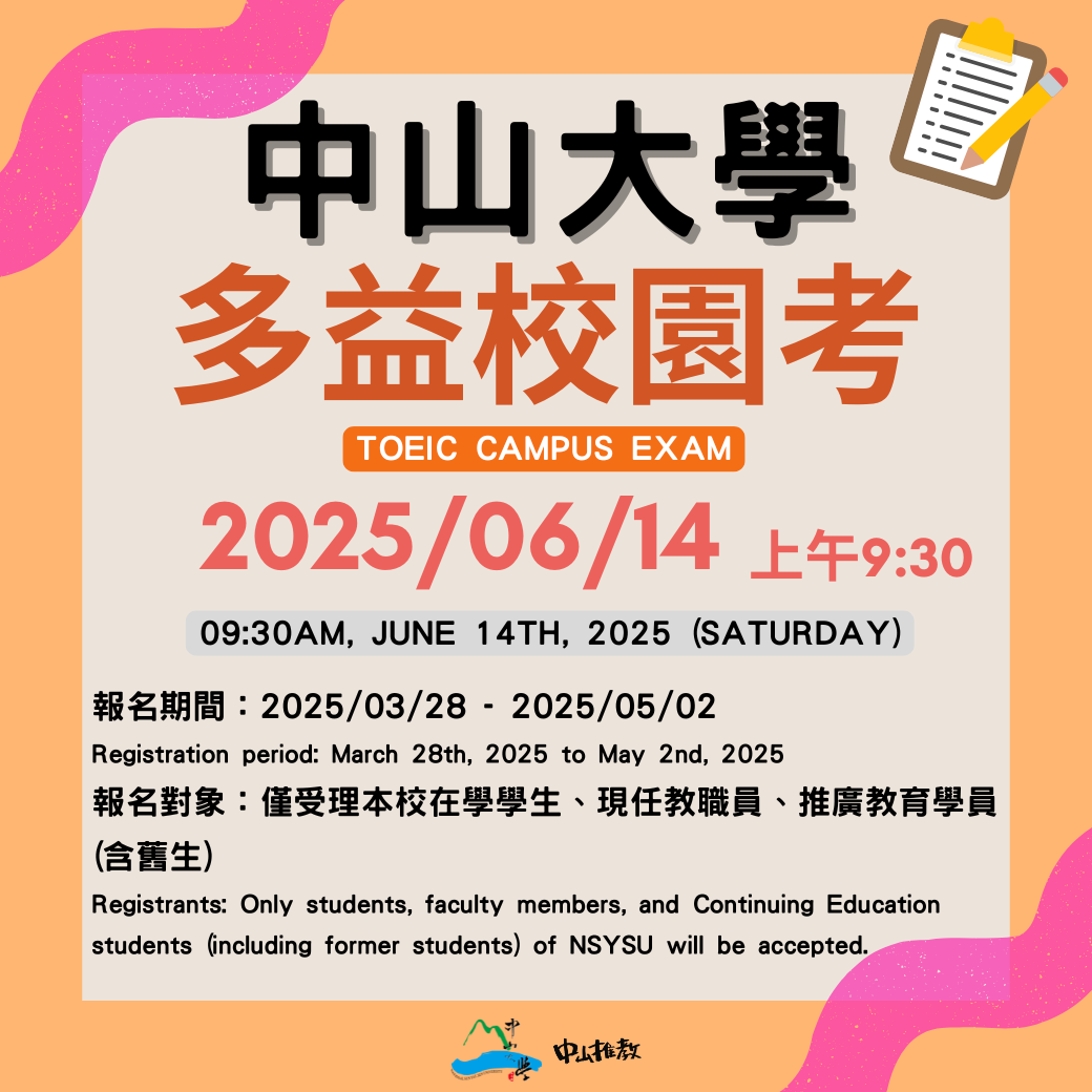 【中山】2025年6月的多益校園考來囉!!!(5/2截止)