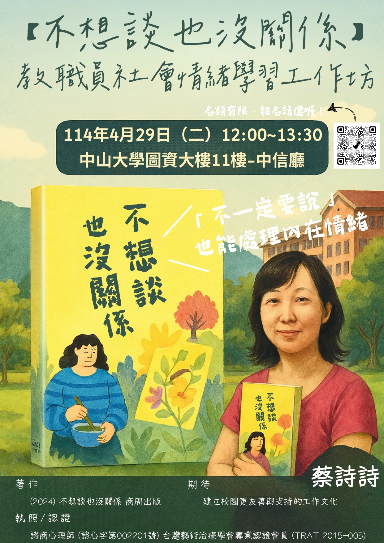 【中山】「不想談也沒關係 」教職員社會情緒學習工作坊(4/29)