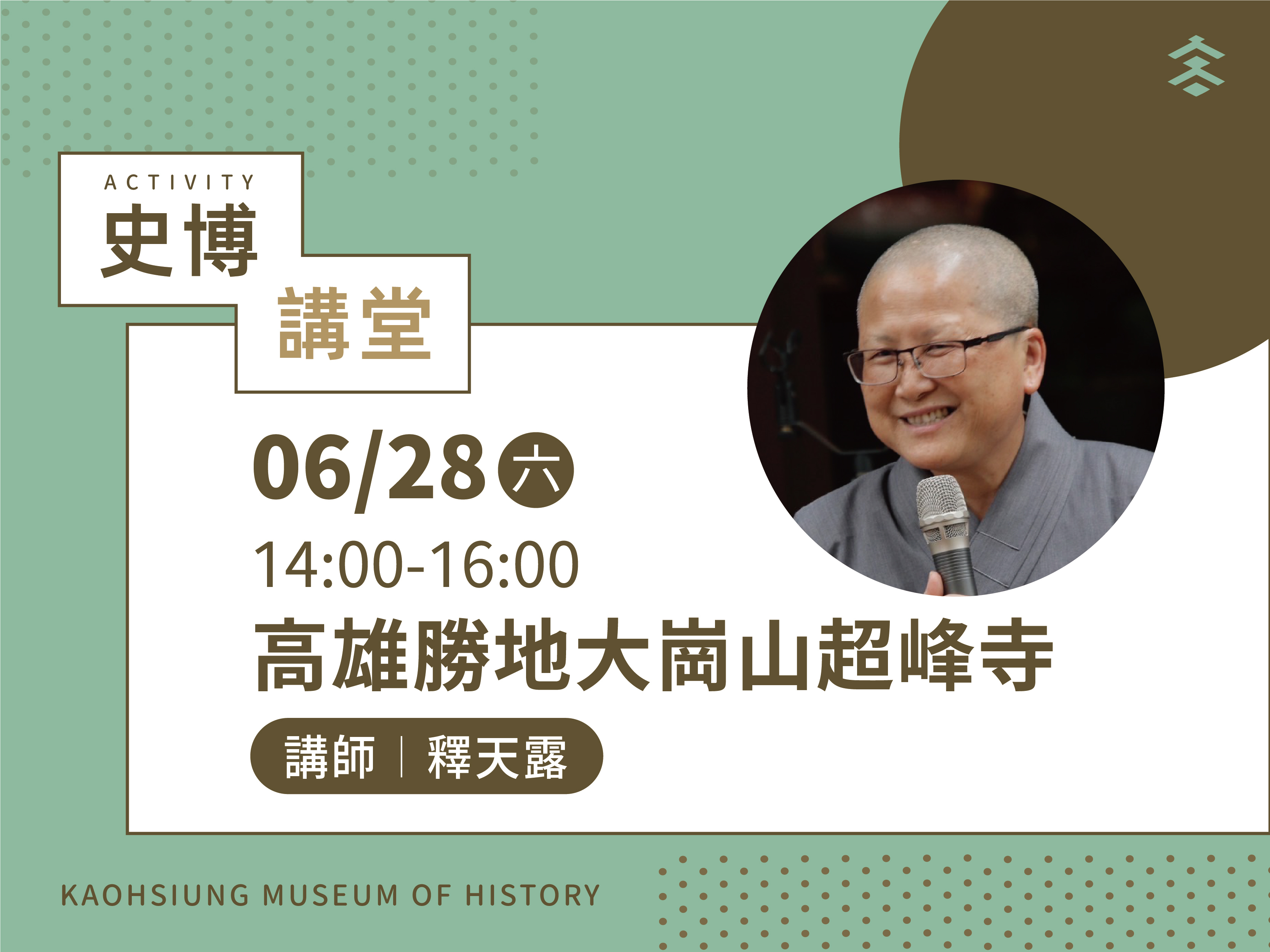 【高雄市立歷史博物館】2025年6月份「史博講堂」講座資訊(6/28)