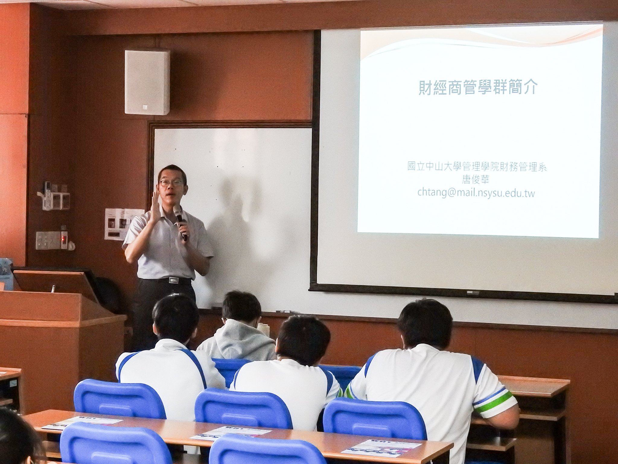 唐主任表示,近幾年他在高中演講的主題,幾乎都不是單純介紹中山管院。他深知高中生幾乎人人有手機,隨時可以上網查資料。因此,他秉持「互助與共好」的原則,常將主題改為「財經商管學群簡介」或是「學習歷程檔案簡介」,不只介紹中山管院,也同時呈現其他學校科系的資訊。他相信,這不僅能吸引更多聽眾,更是大學善盡社會責任的一種方式。