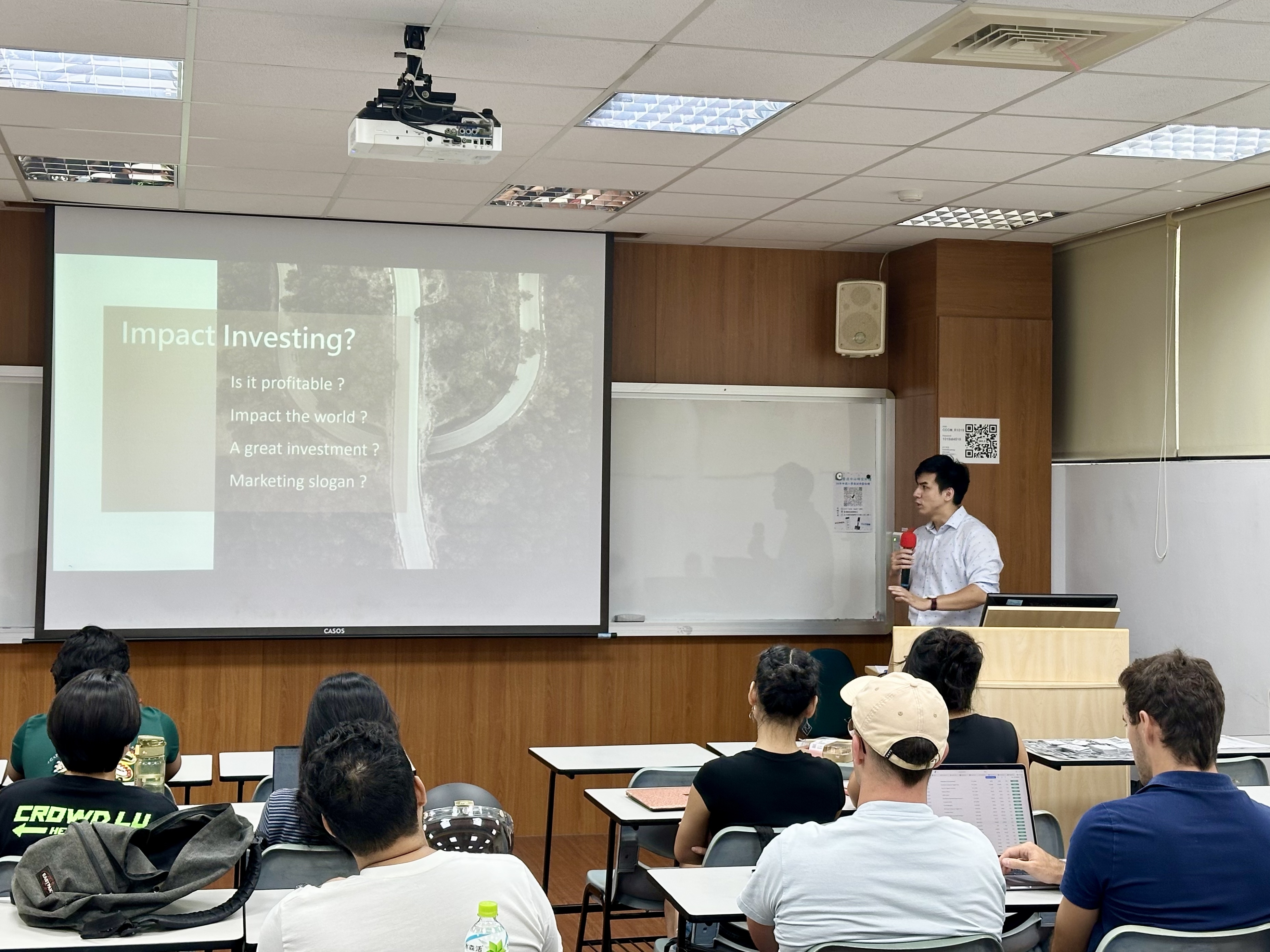 On September 16, 2025, as part of the course IB531 Business Model Development and Practice of Social Enterprises instructed by Professor Dr. Yih Jeng, students had the opportunity to attend a guest lecture by Mr. Yu-Te Lien, Co-Founder and Chief Operating Officer of ImpactEX Co., Ltd.. His talk, titled “The Introduction to Impact Investing and the SROI (Social Return on Investment) Method” has provided valuable insights into how businesses today can align economic goals with social responsibility.