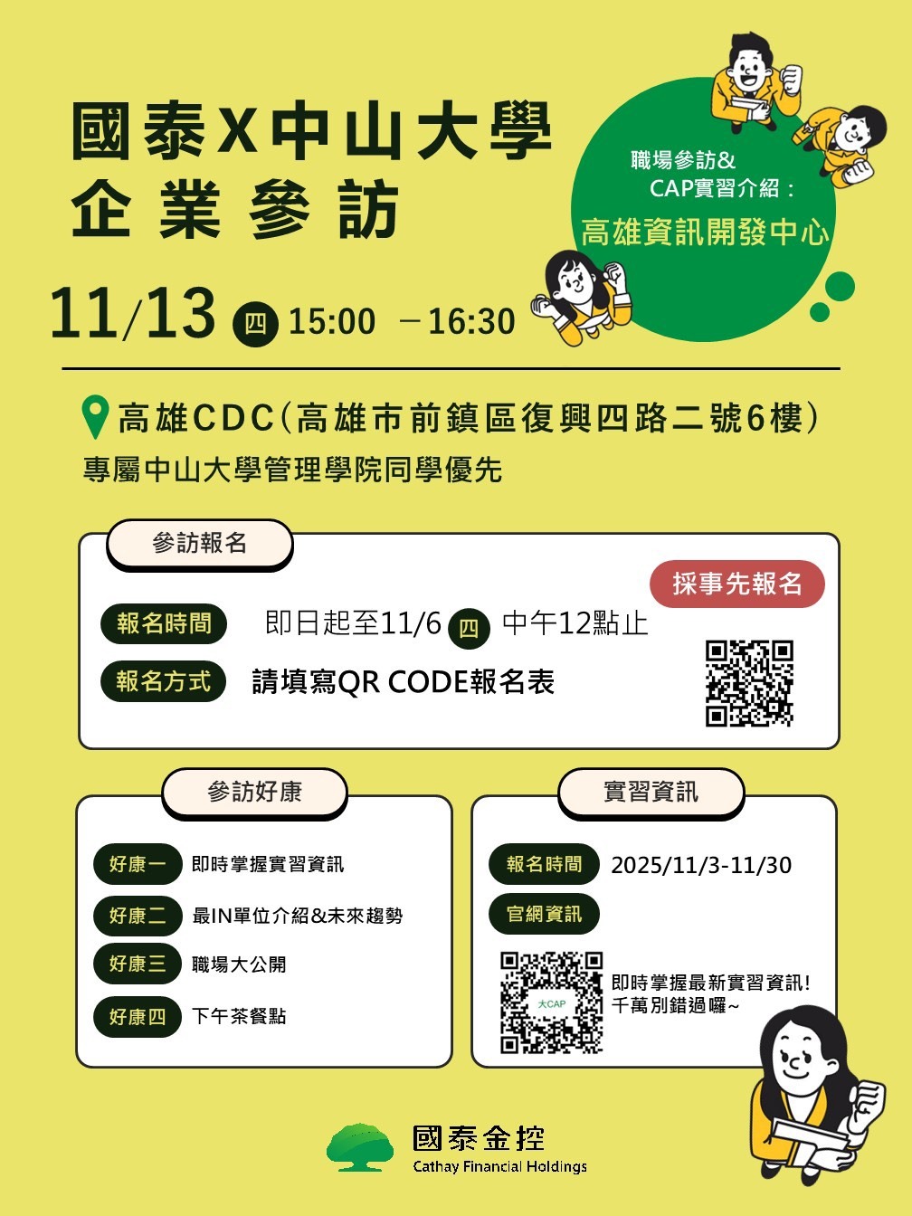 【管院】參訪報名!11/13 走進國泰金控!探索金融 × 資訊 × 敏捷創新 🌐(11/6截止)