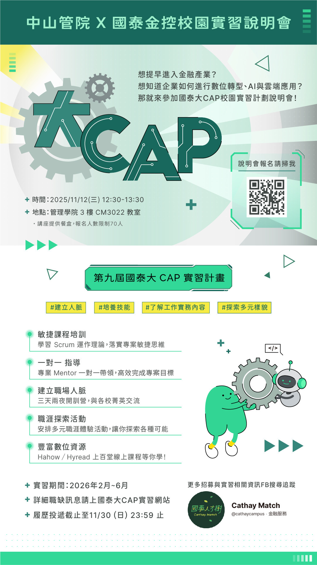【中山管院 × 國泰金控】立即報名!11/12 CAP校園實習計畫說明會 -- 中山管院專場!