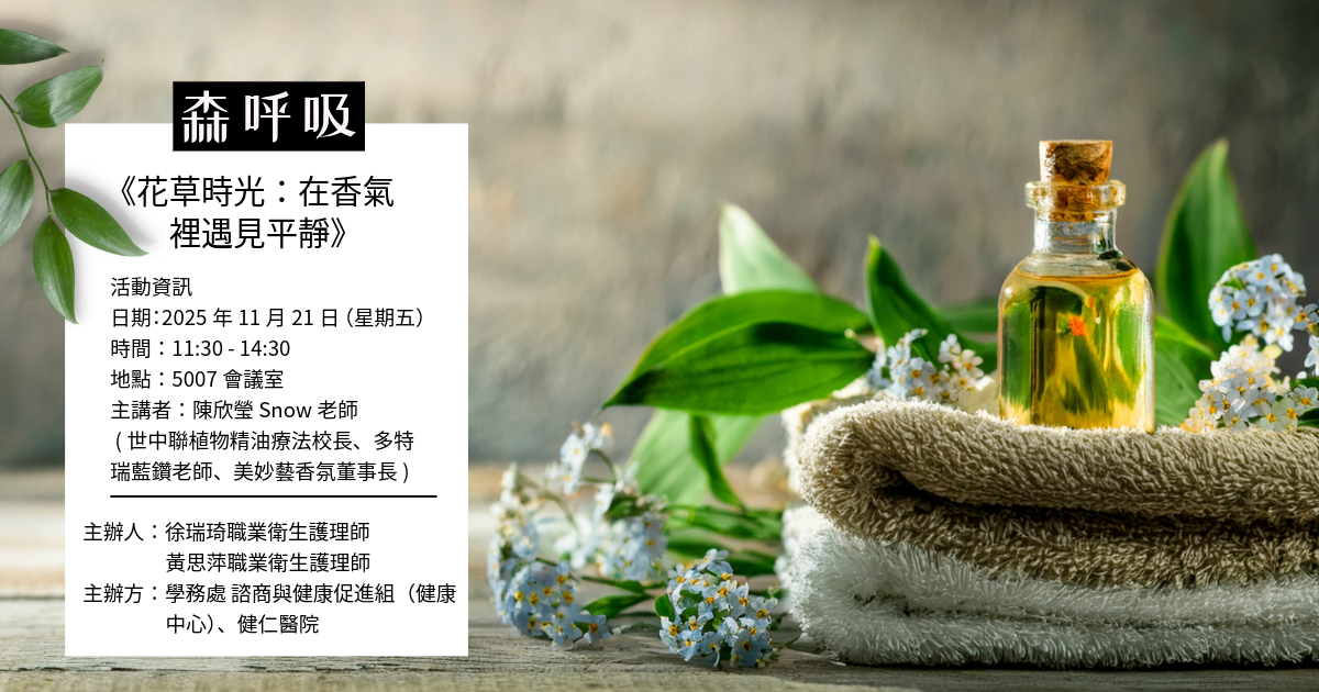 2025/6/5 已參加過《身心靜旅-職場芳療減壓法》課程的同仁,懇請將此次名額留給尚未參加的夥伴。