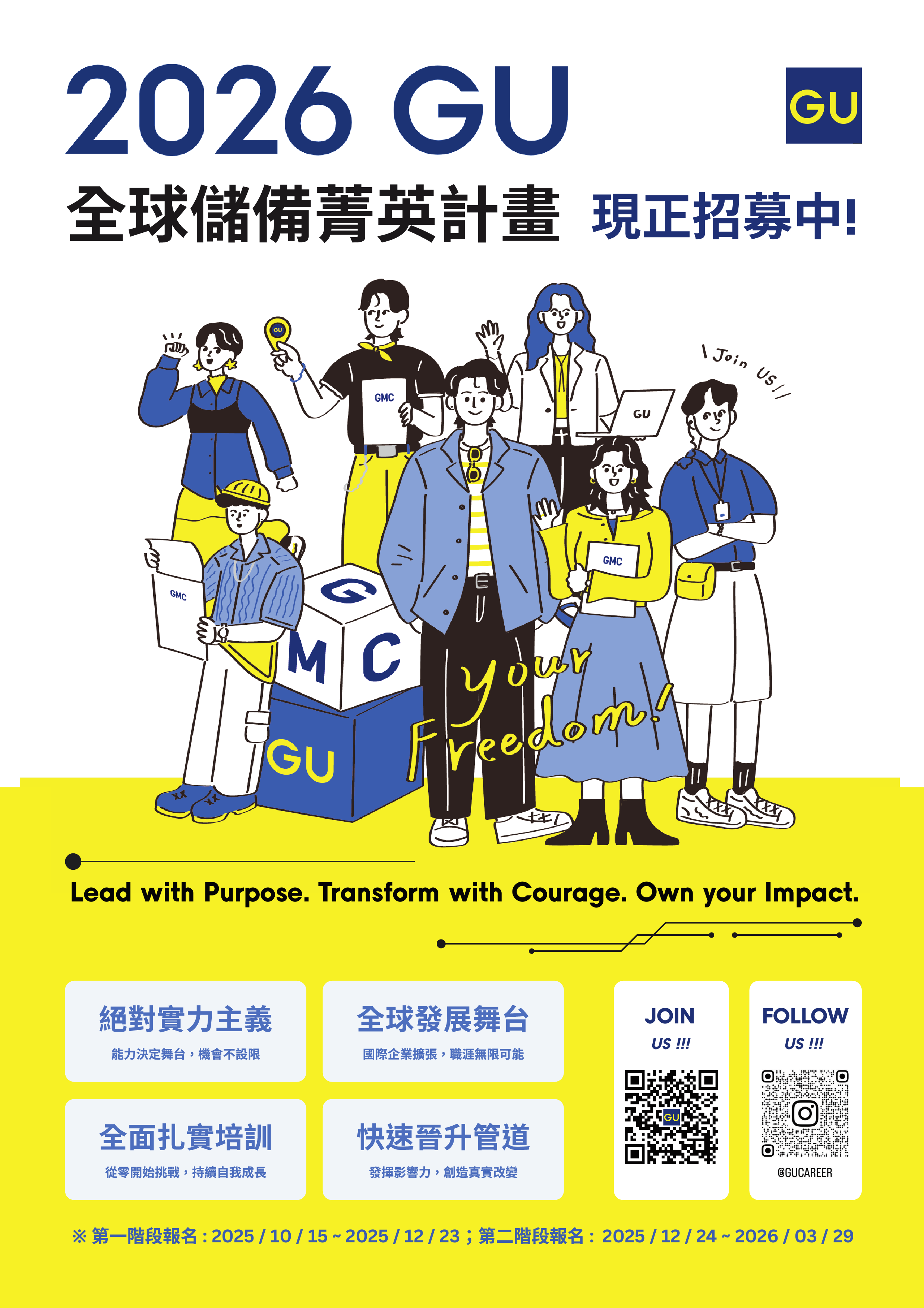 並詳細說明 2026 年全球儲備菁英招募計畫 !帶你親身了解如何在 GU 成為真正的「全球型領導者」。