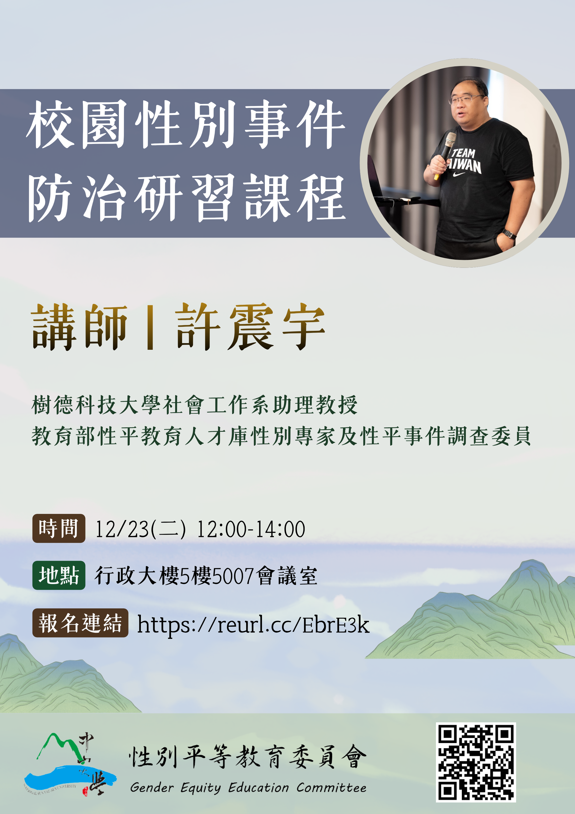 【中山】114-1校園性別事件防治研習課程 Prevention and Handling of Sexual Assault Workshop(12/23)