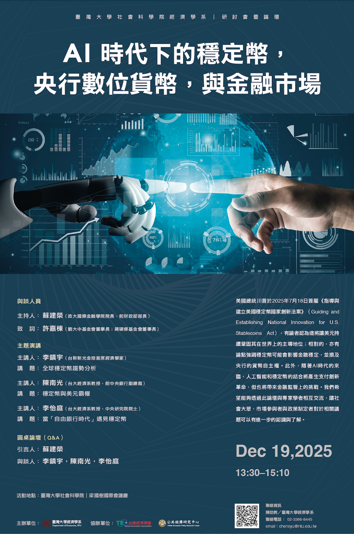 【台大】AI 時代下的穩定幣,央行數位貨幣,與金融市場(12/19)