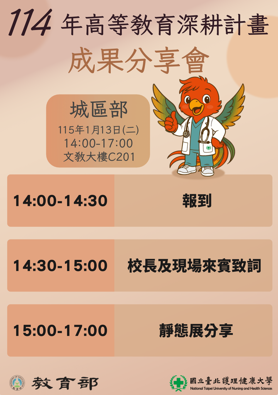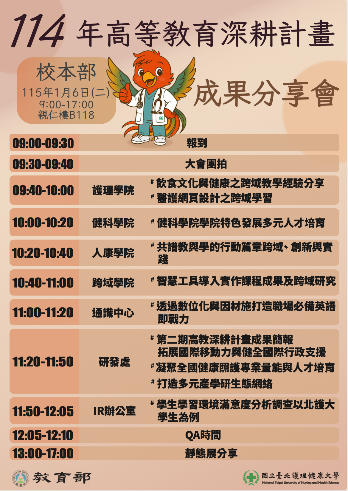 【臺北護理健康大學】「114年度高等教育深耕計畫成果分享會」(1/9)