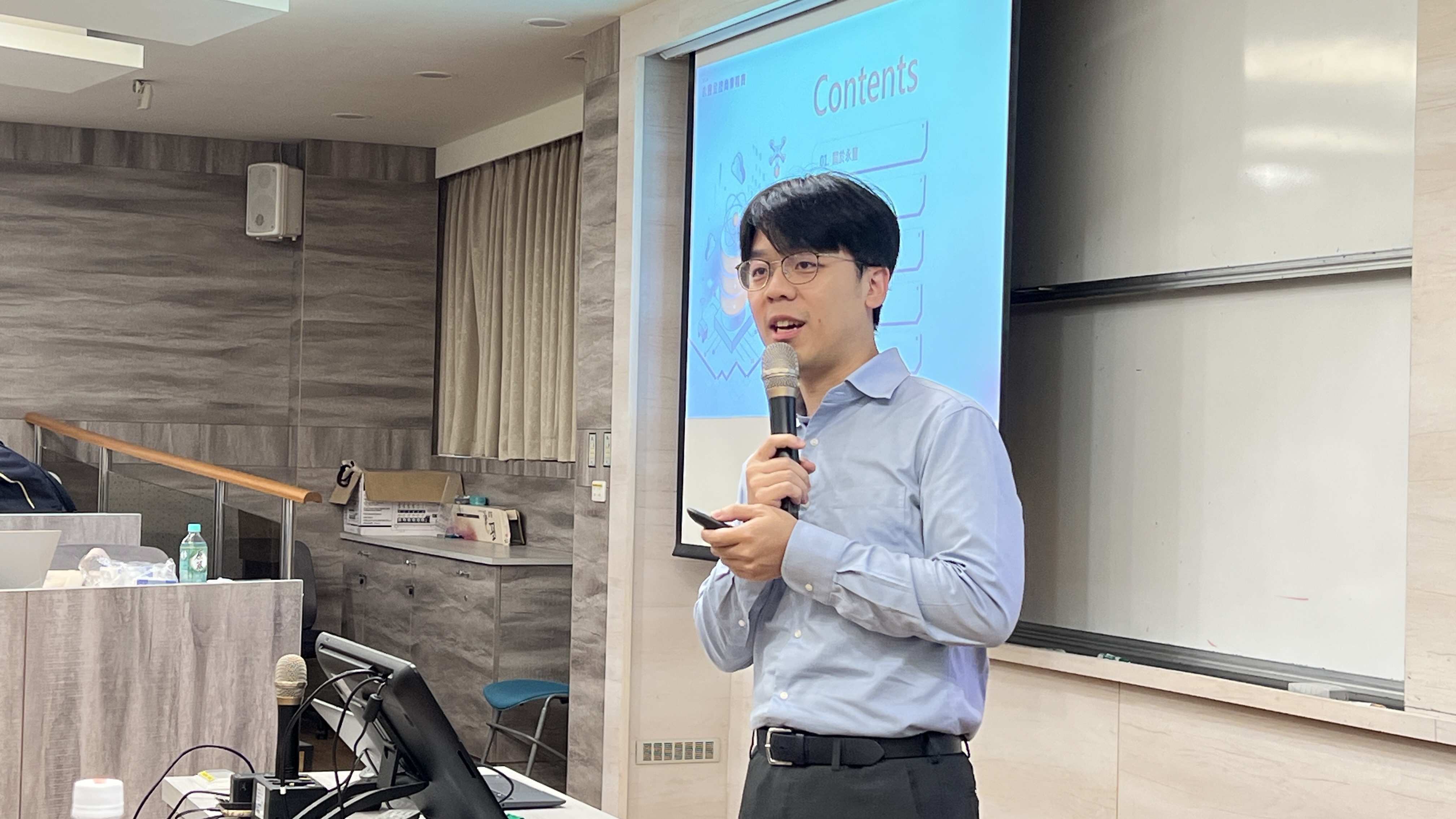 為協助同學掌握提案方向,永豐旗下公司代表陸續上台介紹業務與競賽主題。永豐金控以「科技×永續」為主軸,強調 AI、永續金融皆為目前企業轉型的重點;永豐金證券則介紹「智能投資助手」,期望同學在現有基礎上提出更創新的金融科技應用;永豐銀行則從服務創新與生活金融兩大面向切入,分享 13 項多元主題方向,包含生成式 AI、IPA輔助授信、法人金融創新等,讓同學能依興趣探索最適合發揮的領域。