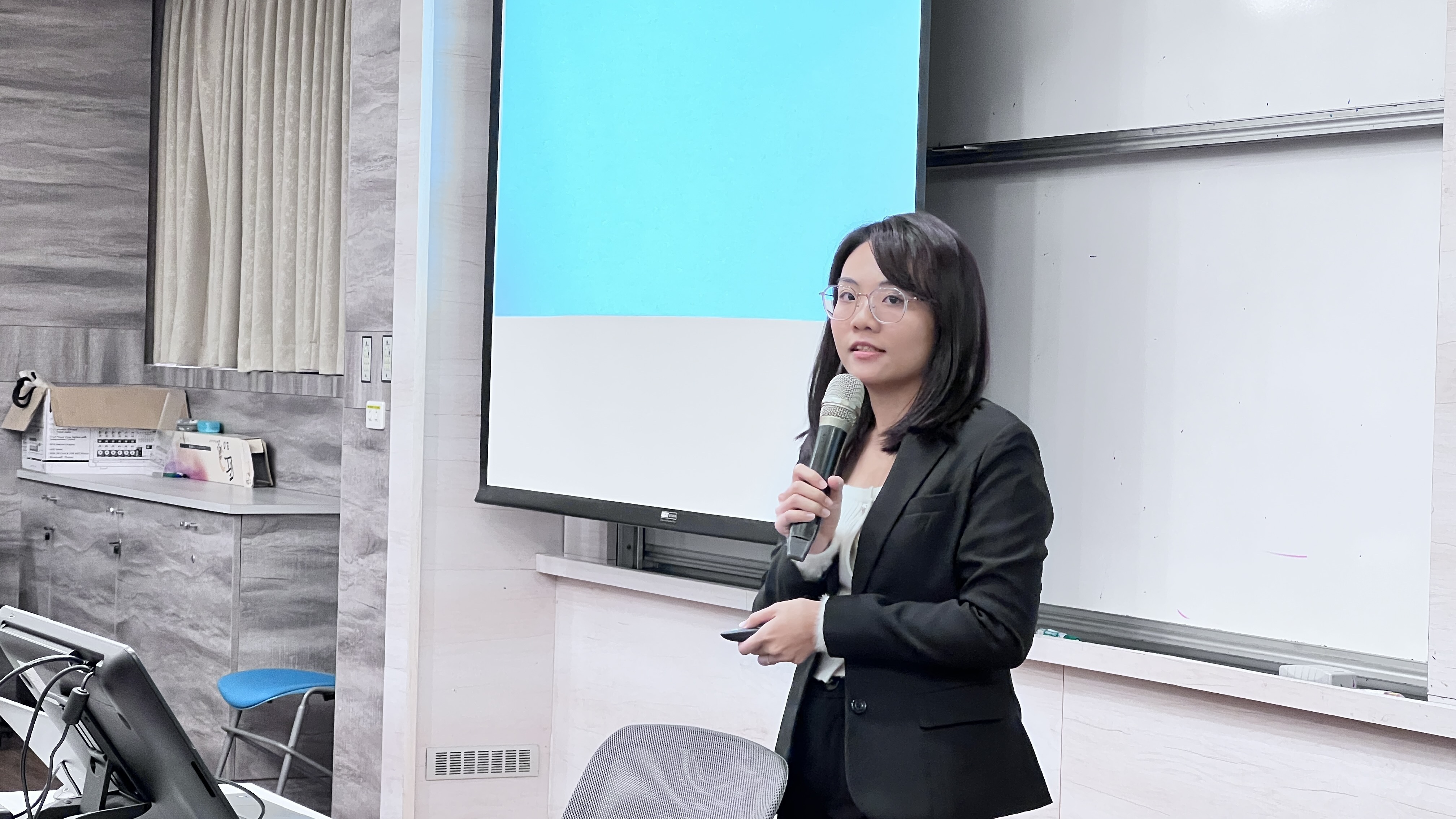 說明會尾聲,邀請曾參加競賽、目前已進入永豐工作的曹家瑜學姊分享自身經驗,從參賽動機、備賽過程到入職發展,鼓勵同學把握機會挑戰自我。Q&A環節台下同學踴躍提問,包括提案是否需符合法規、如何確認合規性、技術可行性需達到何種程度等問題,永豐團隊不只一一解答,還準備了精美小禮物,讓現場氣氛更加熱絡。