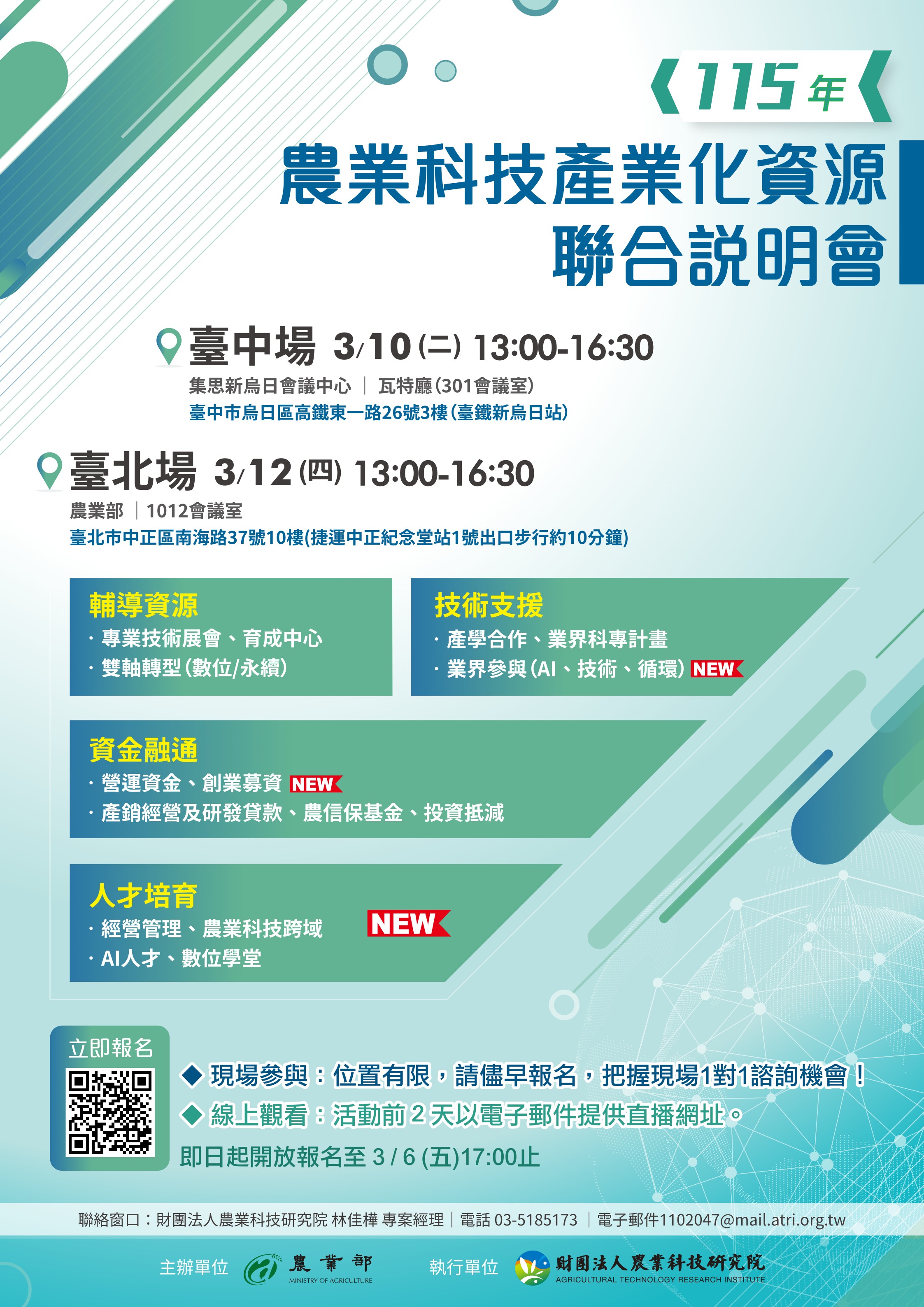 【農業部】「115年農業科技產業化資源聯合說明會」(3/10、3/12)