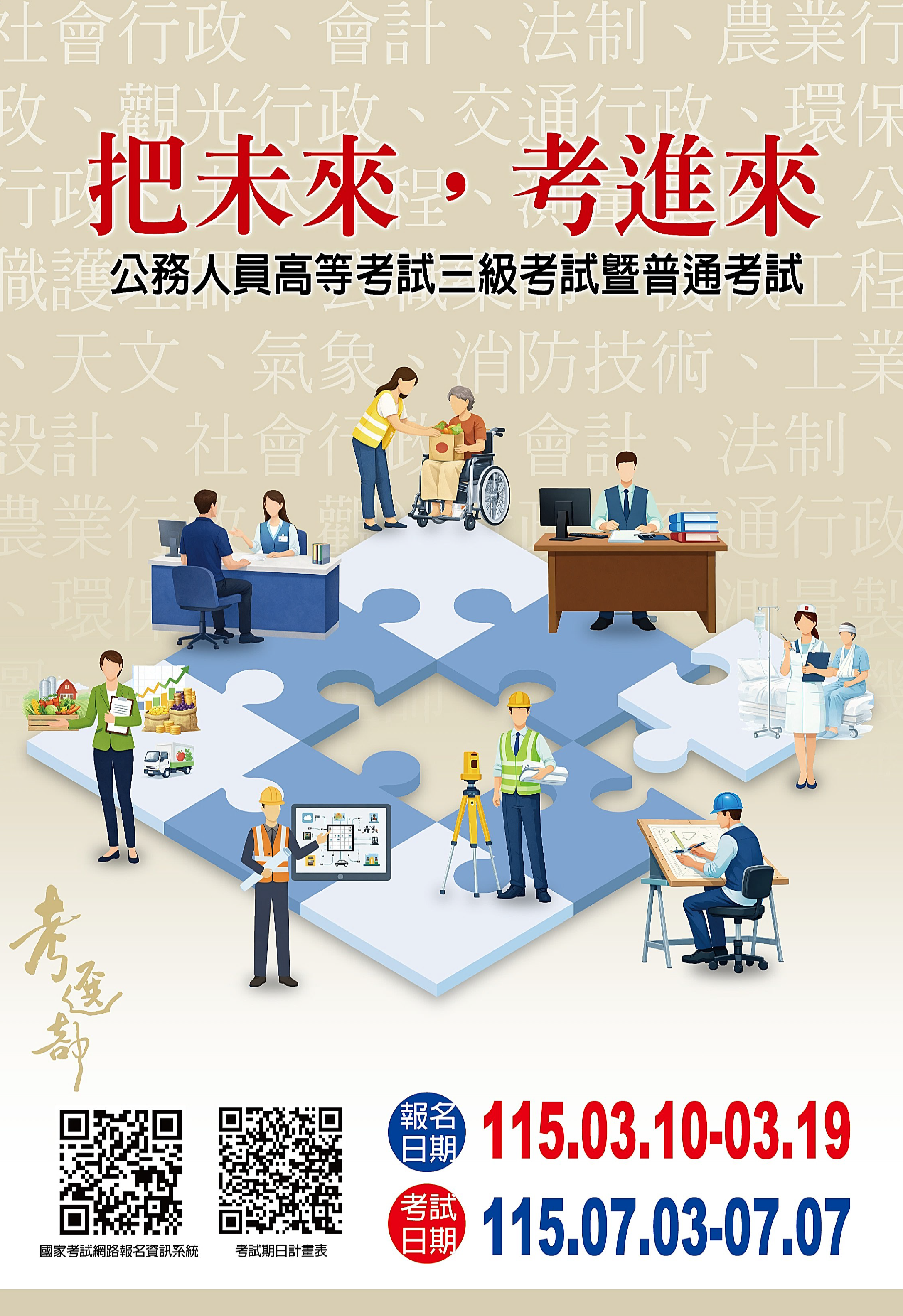 【徵才】3/10-3/19📣115年公務人員高等考試 三級考試暨普通考試 及將開放報名!