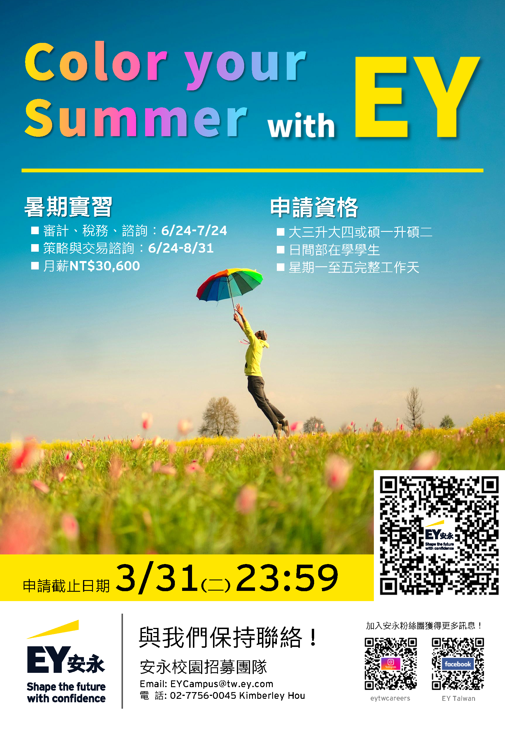 【實習】2026 安永暑期實習計畫開放申請🎨Color your summer with EY(3/31止)