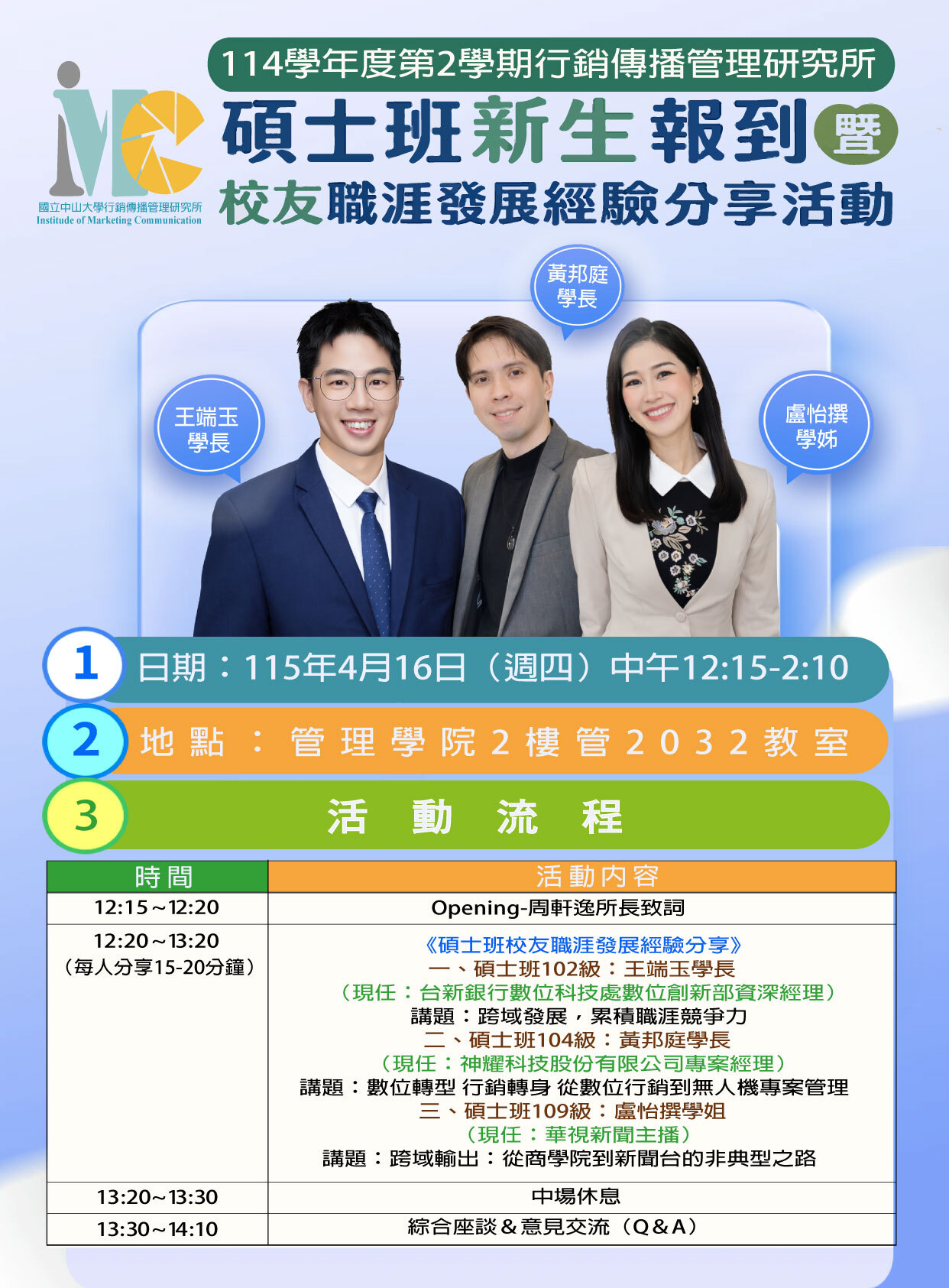 【行傳所】碩士班校友職涯發展經驗分享活動(4/16)