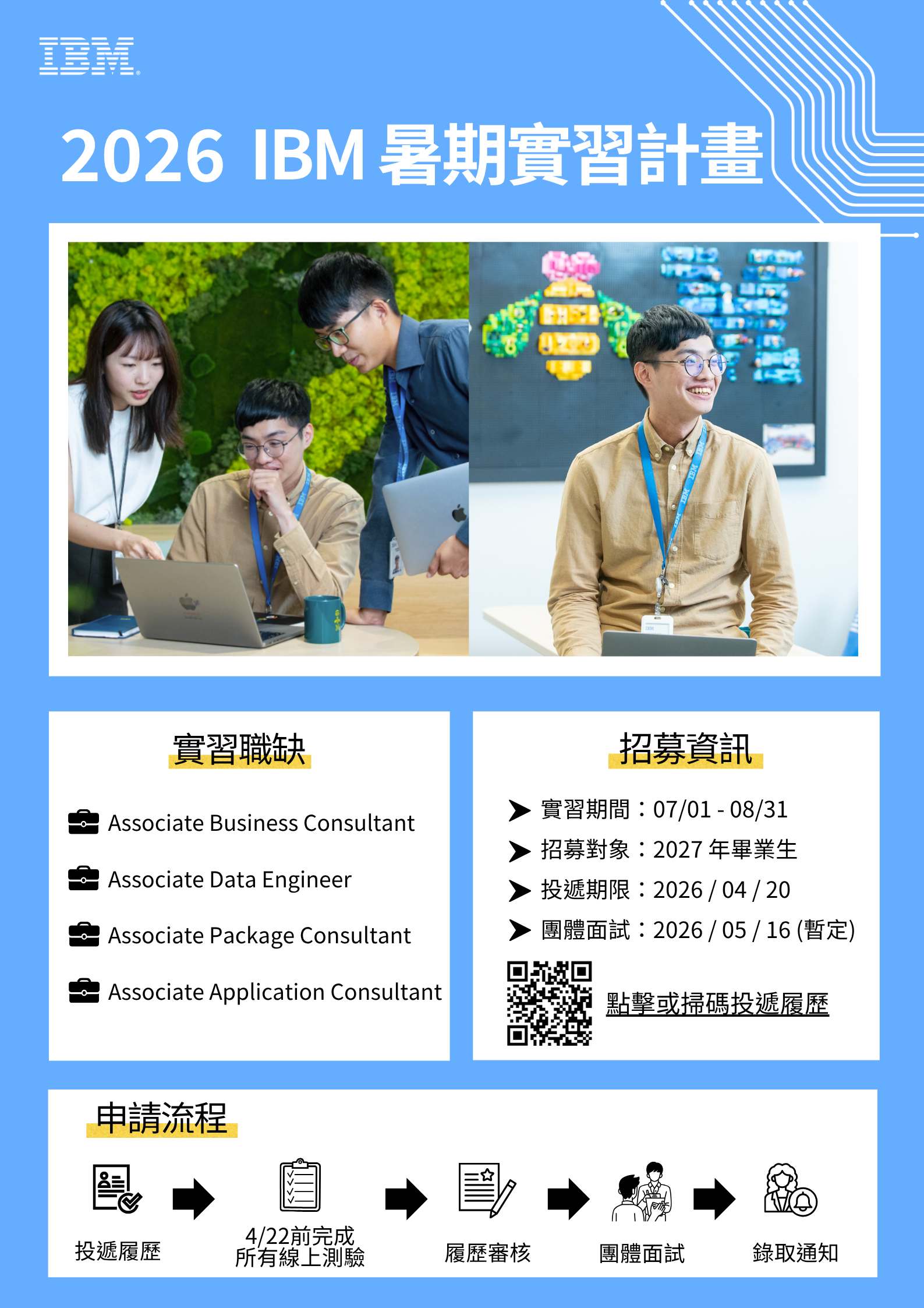 【實習】IBM 2026 暑期實習計畫招募中!(4/20止)